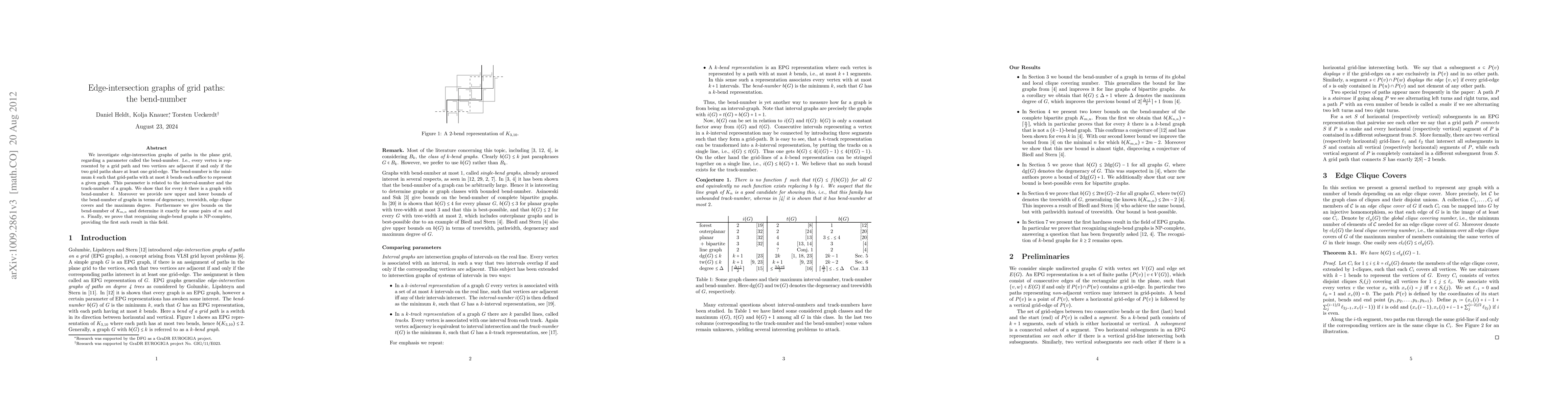 This paper examines edge-intersection graphs formed by grid paths, focusing on the bend-number, which quantifies the minimum number of bends needed to represent a graph. It establishes bounds for the bend-number in relation to graph properties and proves that recognizing single-bend graphs is NP-complete.
