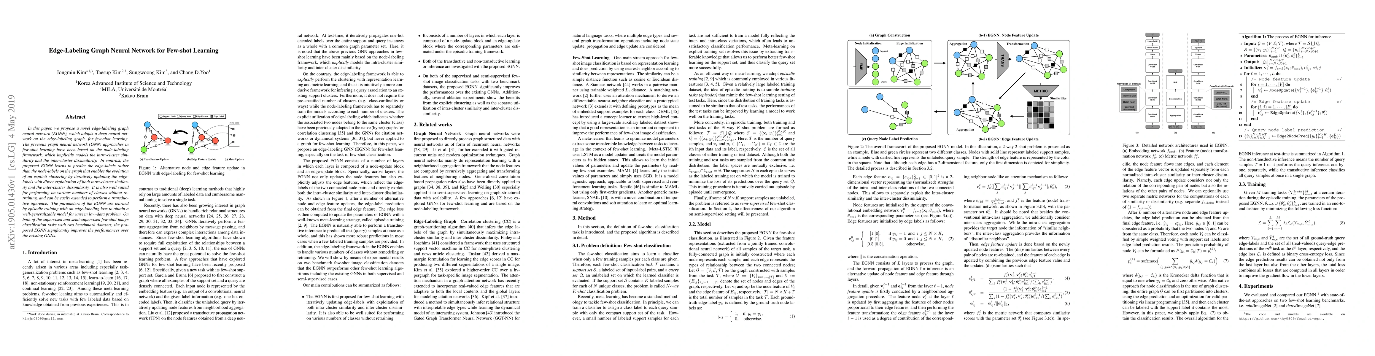 This paper introduces an edge-labeling graph neural network (EGNN) for few-shot learning, which predicts edge-labels instead of node-labels to explicitly model intra-cluster similarity and inter-cluster dissimilarity, outperforming traditional node-labeling GNNs on few-shot image classification tasks.