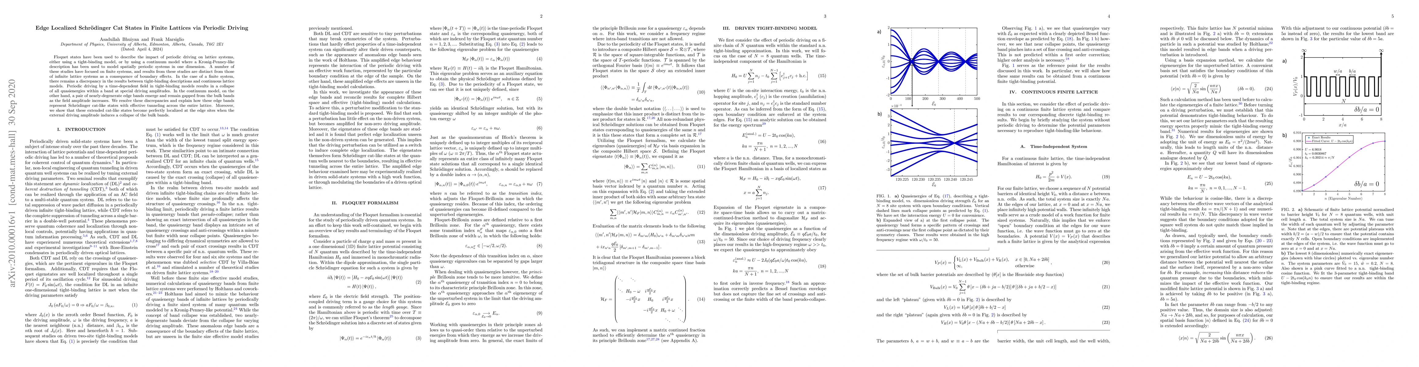 Researchers discover edge localized Schr"odinger cat states in finite lattices via periodic driving, resolving discrepancies between tight-binding and continuum models.
