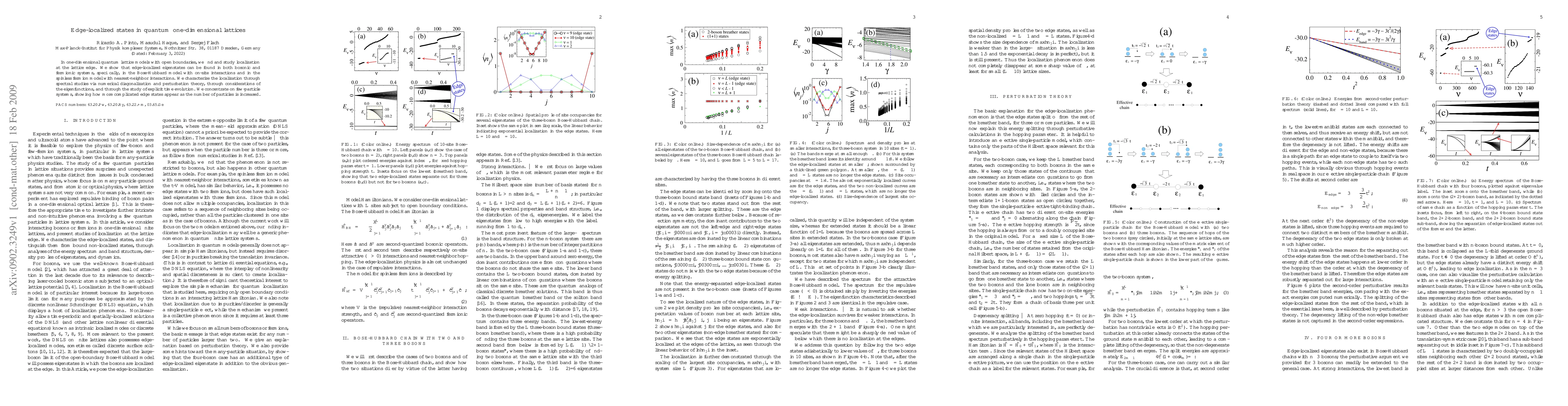 In one-dimensional quantum lattice models with open boundaries, we find and study localization at the lattice edge. We show that edge-localized eigenstates can be found in both bosonic and fermionic systems, specifically, in the Bose-Hubbard model with on-site interactions and in the spinless fermion model with nearest-neighbor interactions. We characterize the localization through spectral studies via numerical diagonalization and perturbation theory, through considerations of the eigenfunctions, and through the study of explicit time evolution. We concentrate on few-particle systems, showing how more complicated edge states appear as the number of particles is increased.