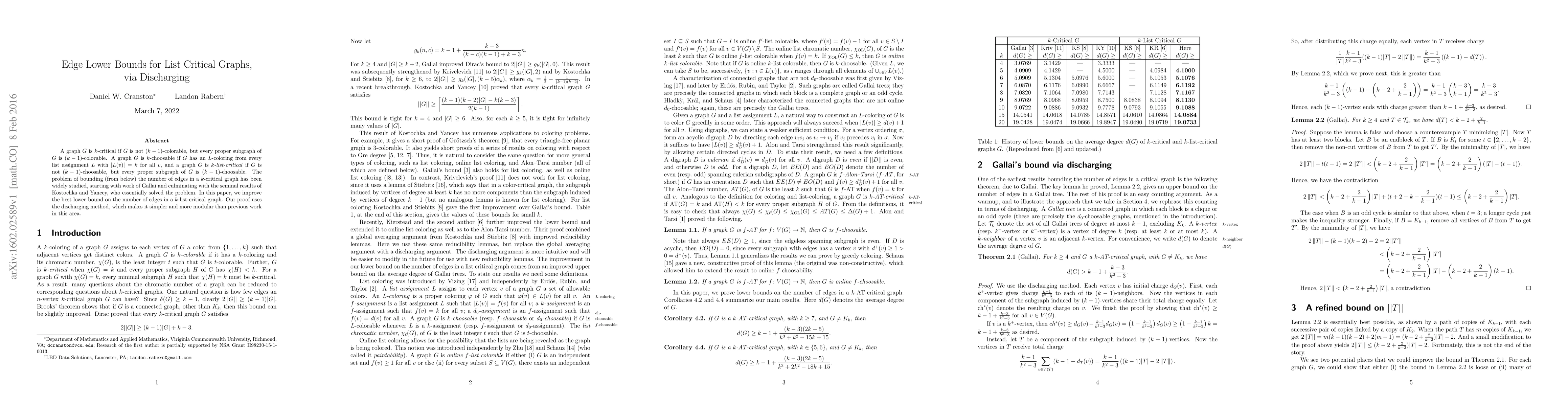 A graph $G$ is $k$-critical if $G$ is not $(k-1)$-colorable, but every proper subgraph of $G$ is $(k-1)$-colorable. A graph $G$ is $k$-choosable if $G$ has an $L$-coloring from every list assignment $L$ with $|L(v)|=k$ for all $v$, and a graph $G$ is \emph{$k$-list-critical} if $G$ is not $(k-1)$-choosable, but every proper subgraph of $G$ is $(k-1)$-choosable. The problem of bounding (from below) the number of edges in a $k$-critical graph has been widely studied, starting with work of Gallai and culminating with the seminal results of Kostochka and Yancey, who essentially solved the problem. In this paper, we improve the best lower bound on the number of edges in a $k$-list-critical graph. Our proof uses the discharging method, which makes it simpler and more modular than previous work in this area.