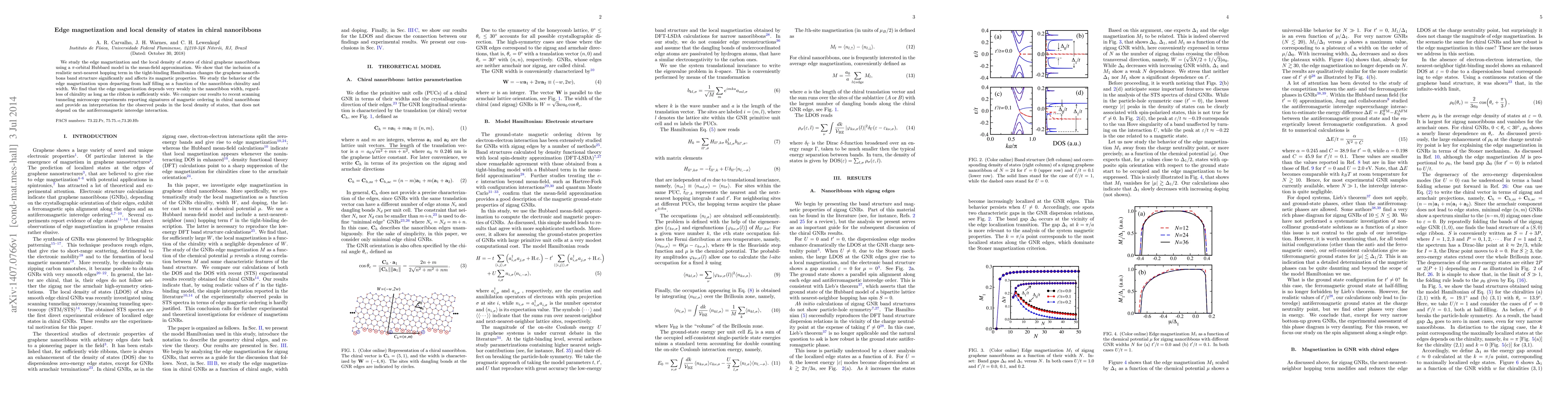 This research examines the edge magnetization and local density of states in chiral graphene nanoribbons using a π-orbital Hubbard model, revealing that next-nearest hopping alters the band structure and magnetic properties. The study finds edge magnetization is largely width-independent in sufficiently wide nanoribbons, and interprets experimental STM data without relying on interedge antiferromagnetic interactions.