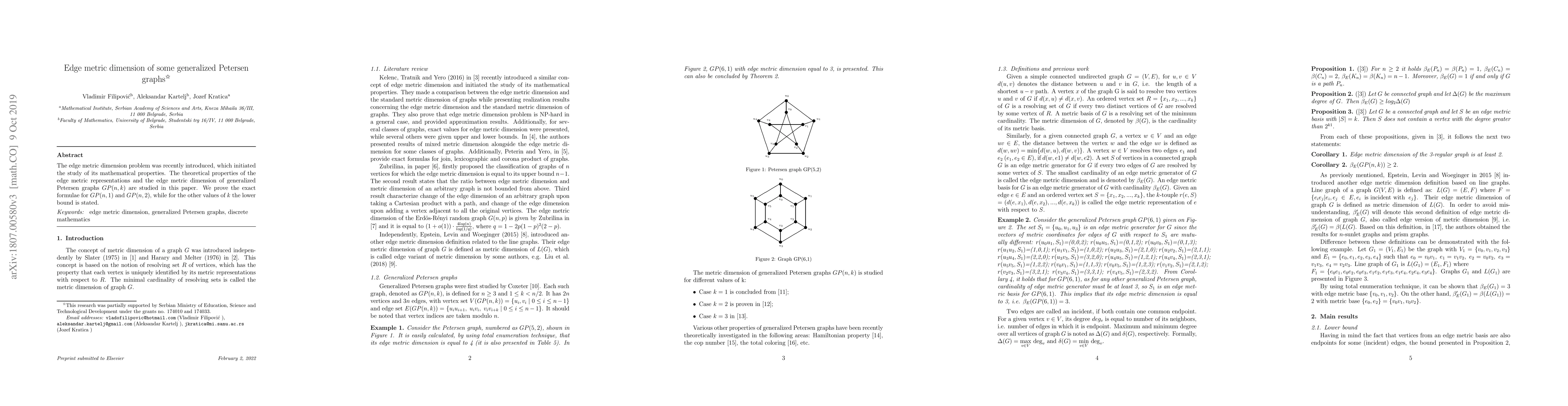 This paper investigates the edge metric dimension in generalized Petersen graphs $GP(n,k)$, deriving exact formulae for $GP(n,1)$ and $GP(n,2)$ and providing a lower bound for other $k$ values. The study contributes to understanding the mathematical properties of edge metric representations.