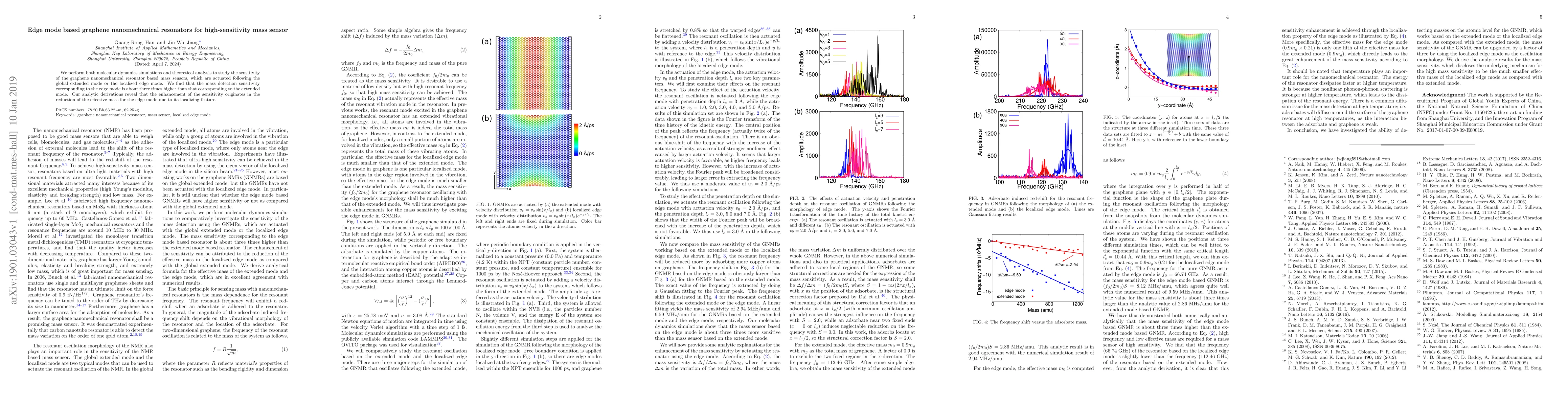 Graphene nanomechanical resonators show improved mass detection sensitivity when in edge mode, about three times higher than global extended mode, due to localized effective mass reduction.