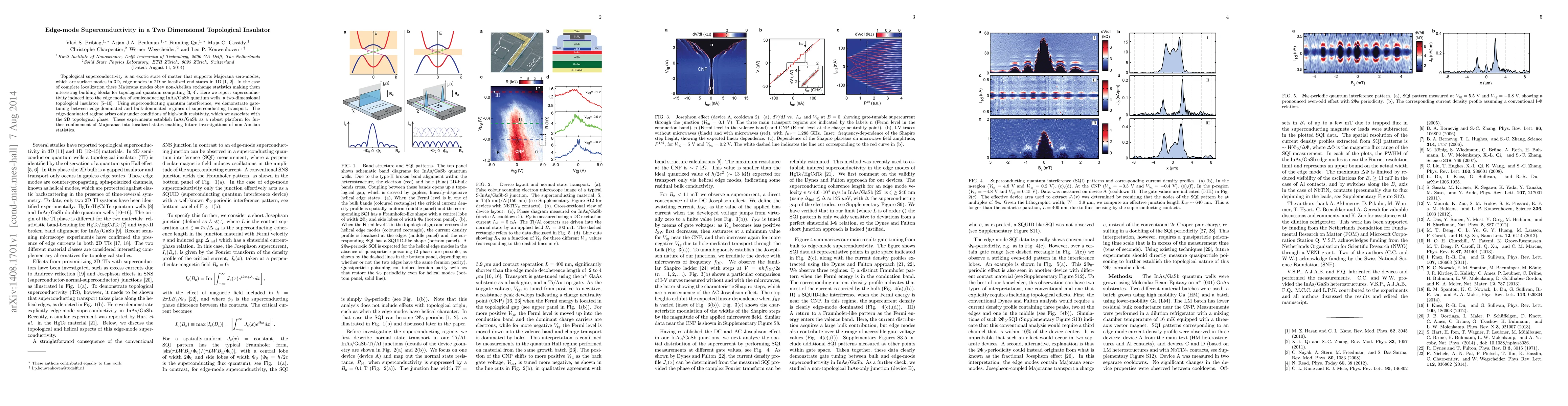 Topological superconductivity is an exotic state of matter that supports Majorana zero-modes, which are surface modes in 3D, edge modes in 2D or localized end states in 1D. In the case of complete localization these Majorana modes obey non-Abelian exchange statistics making them interesting building blocks for topological quantum computing. Here we report superconductivity induced into the edge modes of semiconducting InAs/GaSb quantum wells, a two-dimensional topological insulator. Using superconducting quantum interference, we demonstrate gate-tuning between edge-dominated and bulk-dominated regimes of superconducting transport. The edge-dominated regime arises only under conditions of high-bulk resistivity, which we associate with the 2D topological phase. These experiments establish InAs/GaSb as a robust platform for further confinement of Majoranas into localized states enabling future investigations of non-Abelian statistics.
