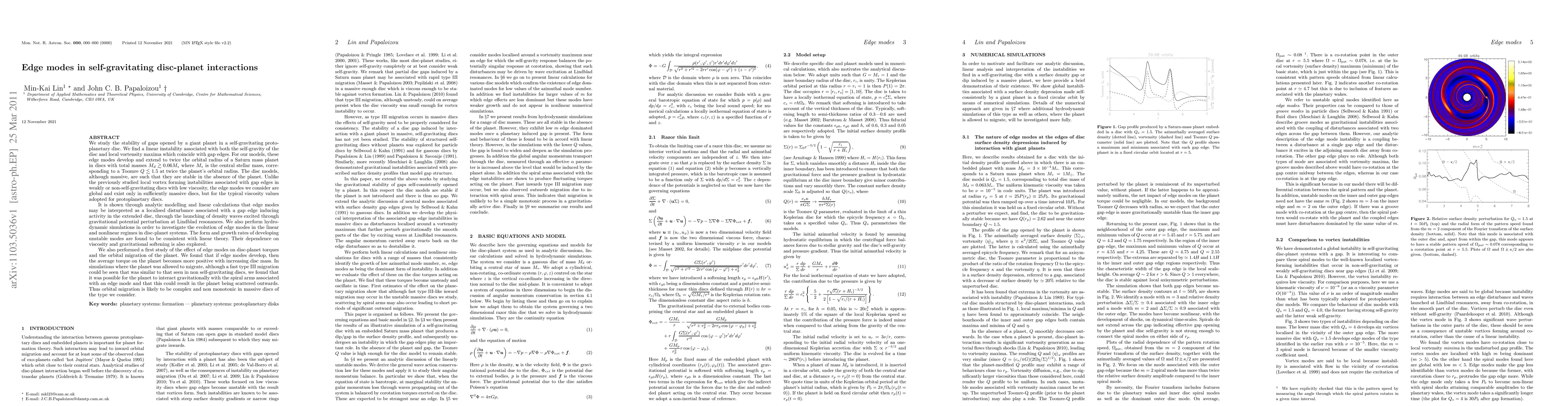 This paper investigates the stability of gaps created by giant planets in self-gravitating protoplanetary discs, identifying linear instabilities termed edge modes that develop due to disc self-gravity and local vortensity maxima. These modes can significantly influence planetary migration, potentially leading to non-monotonic and complex orbital paths.