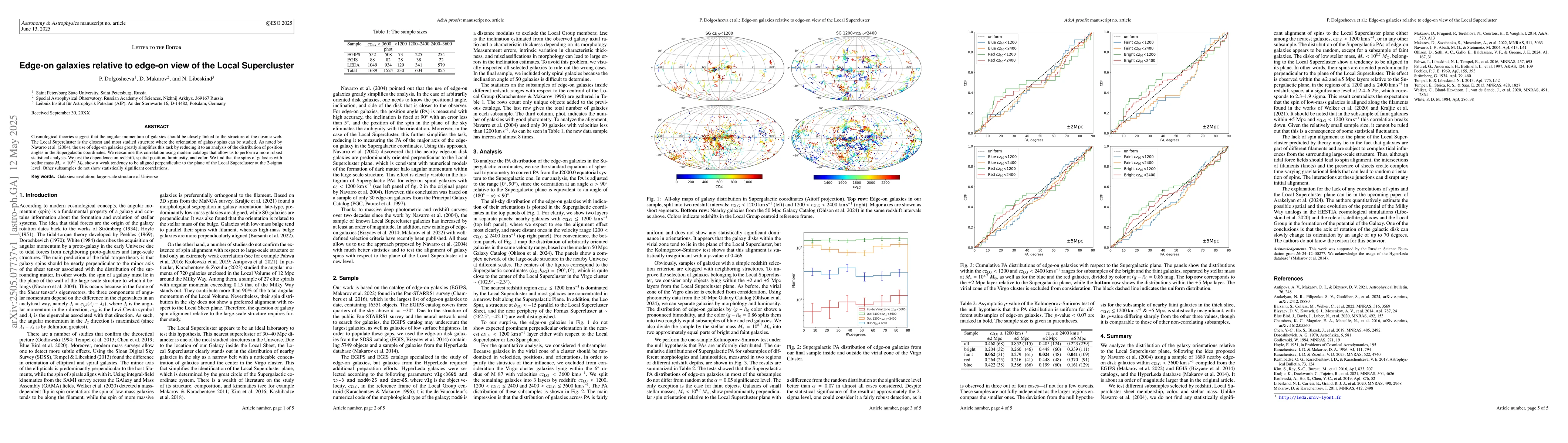 The paper presents an updated analysis of edge-on galaxy distributions relative to the Local Supercluster, employing modern catalogs and statistical methods to test various dependencies.