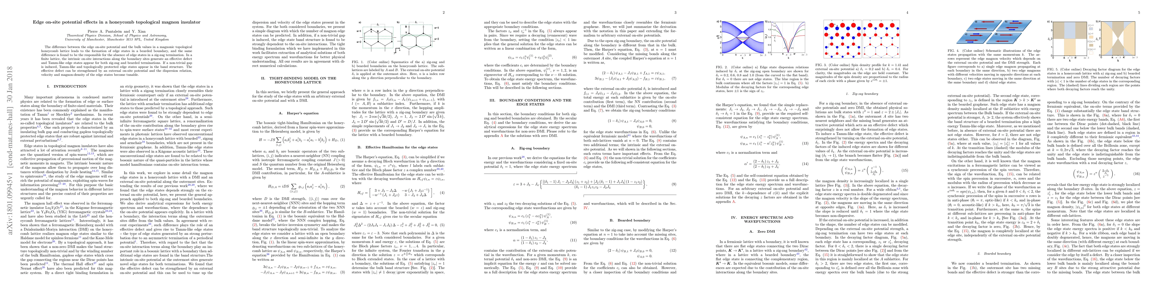 The difference between the edge on-site potential and the bulk values in a magnonic topological honeycomb lattice leads to the formation of edge states in a bearded boundary, and the same difference is found to be the responsible for the absence of edge states in a zig-zag termination. In a finite lattice, the intrinsic on-site interactions along the boundary sites generate an effective defect and Tamm-like edge states appear for both zig-zag and bearded terminations. If a non-trivial gap is induced, Tamm-like and topologically protected edge states appear in the band structure. The effective defect can be strengthened by an external on-site potential and the dispersion relation, velocity and magnon-density of the edge states become tunable.