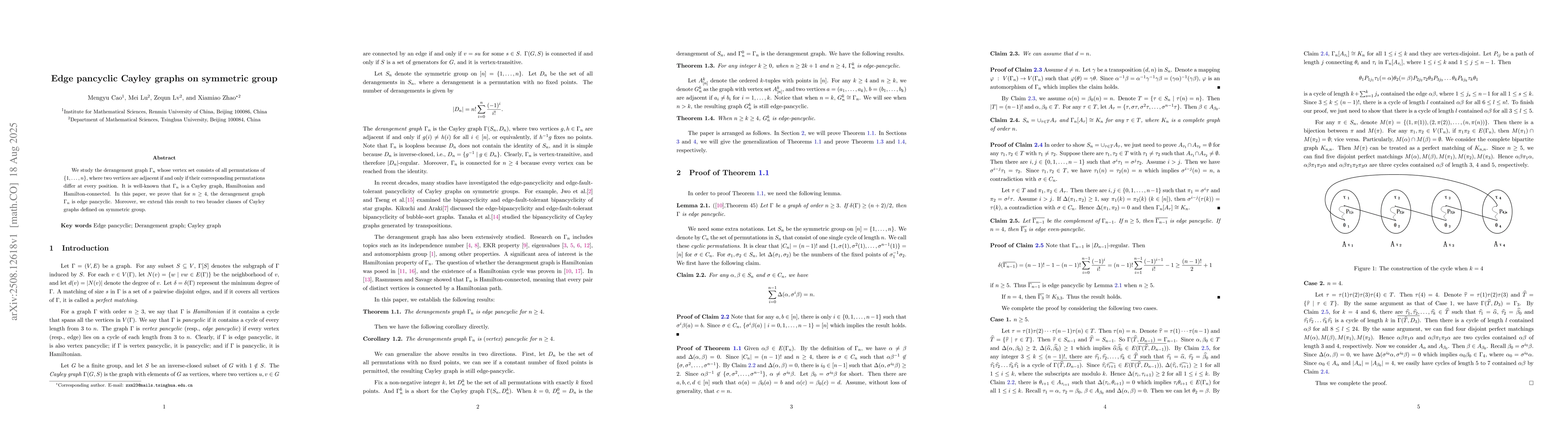 We study the derangement graph $\Gamma_n$ whose vertex set consists of all permutations of $\{1,\ldots,n\}$, where two vertices are adjacent if and only if their corresponding permutations differ at every position. It is well-known that $\Gamma_n$ is a Cayley graph, Hamiltonian and Hamilton-connected. In this paper, we prove that for $n \geq 4$, the derangement graph $\Gamma_n$ is edge pancyclic. Moreover, we extend this result to two broader classes of Cayley graphs defined on symmetric group.