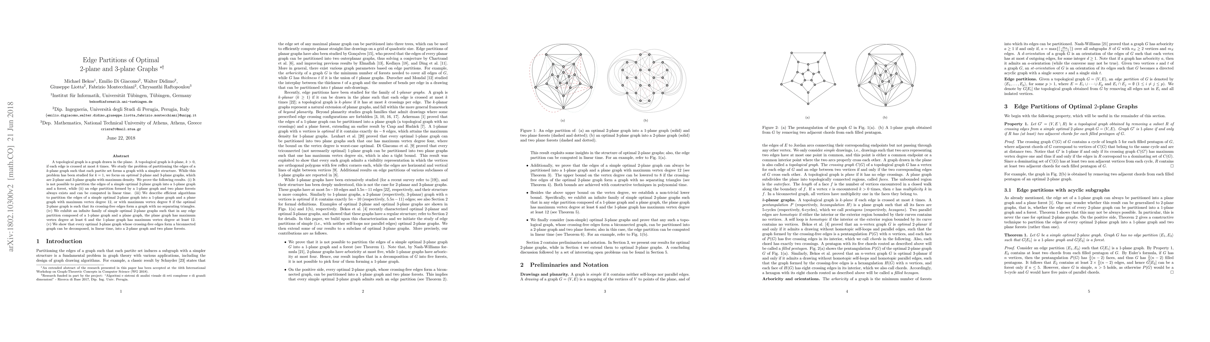 Researchers studied edge partitions of optimal 2-plane and 3-plane graphs to simplify their structure, developing efficient algorithms for partitioning into specific types of graphs with varying vertex degrees.