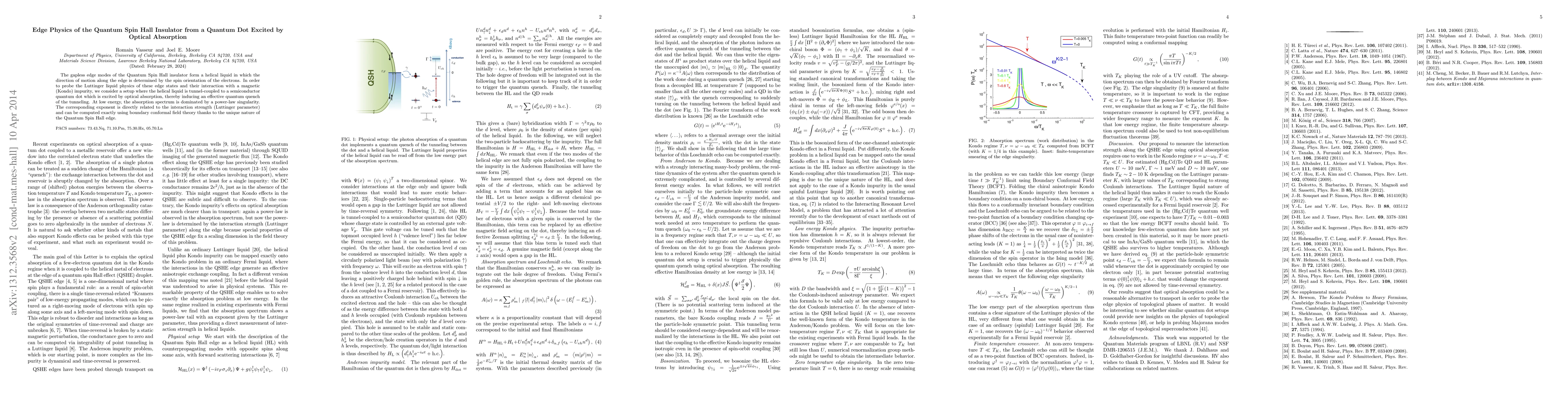 This paper explores the edge physics of Quantum Spin Hall insulators, focusing on the helical liquid formed by gapless edge modes. It investigates the interaction of these modes with a magnetic impurity via a quantum dot excited by optical absorption, revealing a power-law singularity in the absorption spectrum linked to the Luttinger parameter, computed using boundary conformal field theory.