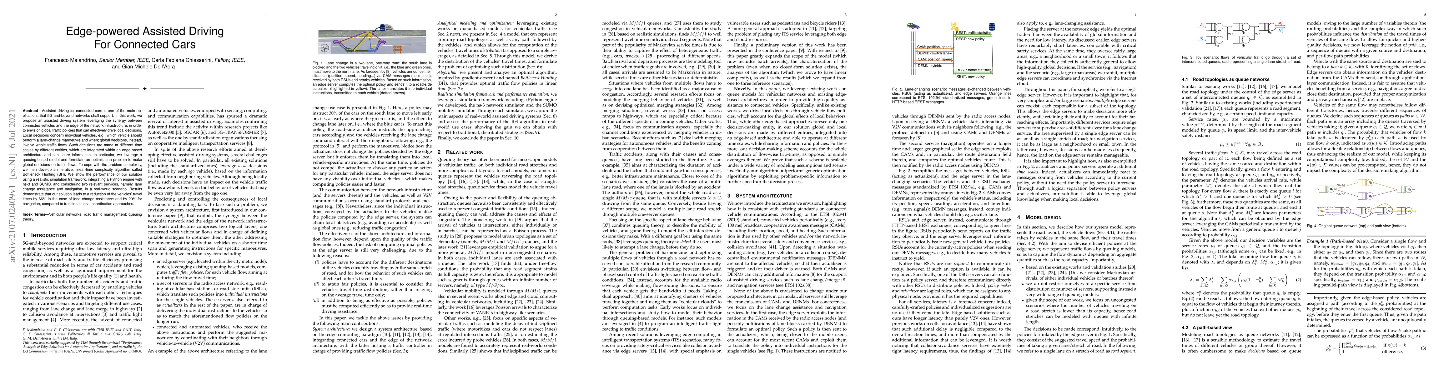 Assisted driving for connected cars is one of the main applications that 5G-and-beyond networks shall support. In this work, we propose an assisted driving system leveraging the synergy between connected vehicles and the edge of the network infrastructure, in order to envision global traffic policies that can effectively drive local decisions. Local decisions concern individual vehicles, e.g., which vehicle should perform a lane-change manoeuvre and when; global decisions, instead, involve whole traffic flows. Such decisions are made at different time scales by different entities, which are integrated within an edge-based architecture and can share information. In particular, we leverage a queuing-based model and formulate an optimization problem to make global decisions on traffic flows. To cope with the problem complexity, we then develop an iterative, linear-time complexity algorithm called Bottleneck Hunting (BH). We show the performance of our solution using a realistic simulation framework, integrating a Python engine with ns-3 and SUMO, and considering two relevant services, namely, lane change assistance and navigation, in a real-world scenario. Results demonstrate that our solution leads to a reduction of the vehicles' travel times by 66 in the case of lane change assistance and by 20 for navigation, compared to traditional, local-coordination approaches.