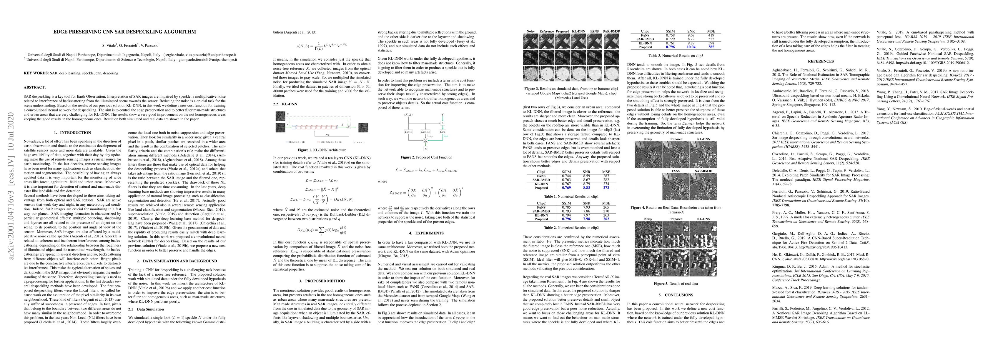 This paper proposes a new convolutional neural network (CNN) with an edge-preserving cost function for despeckling Synthetic Aperture Radar (SAR) images, aiming to enhance the clarity of manmade and urban structures while maintaining performance in homogeneous areas. The results demonstrate significant improvements over previous methods on both simulated and real data.