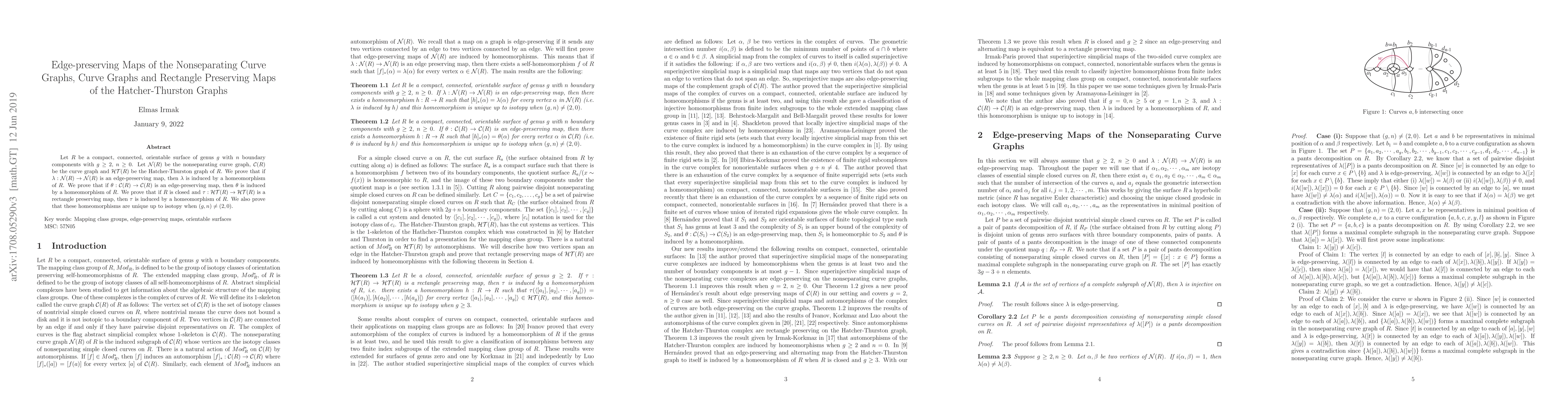 Let $R$ be a compact, connected, orientable surface of genus $g$ with $n$ boundary components with $g \geq 2$, $n \geq 0$. Let $\mathcal{N}(R)$ be the nonseparating curve graph, $\mathcal{C}(R)$ be the curve graph and $\mathcal{HT}(R)$ be the Hatcher-Thurston graph of $R$. We prove that if $\lambda : \mathcal{N}(R) \rightarrow\mathcal{N}(R)$ is an edge-preserving map, then $\lambda$ is induced by a homeomorphism of $R$. We prove that if $\theta : \mathcal{C}(R) \rightarrow \mathcal{C}(R)$ is an edge-preserving map, then $\theta$ is induced by a homeomorphism of $R$. We prove that if $R$ is closed and $\tau: \mathcal{HT}(R) \rightarrow\mathcal{HT}(R)$ is a rectangle preserving map, then $\tau$ is induced by a homeomorphism of $R$. We also prove that these homeomorphisms are unique up to isotopy when $(g, n) \neq (2, 0)$.