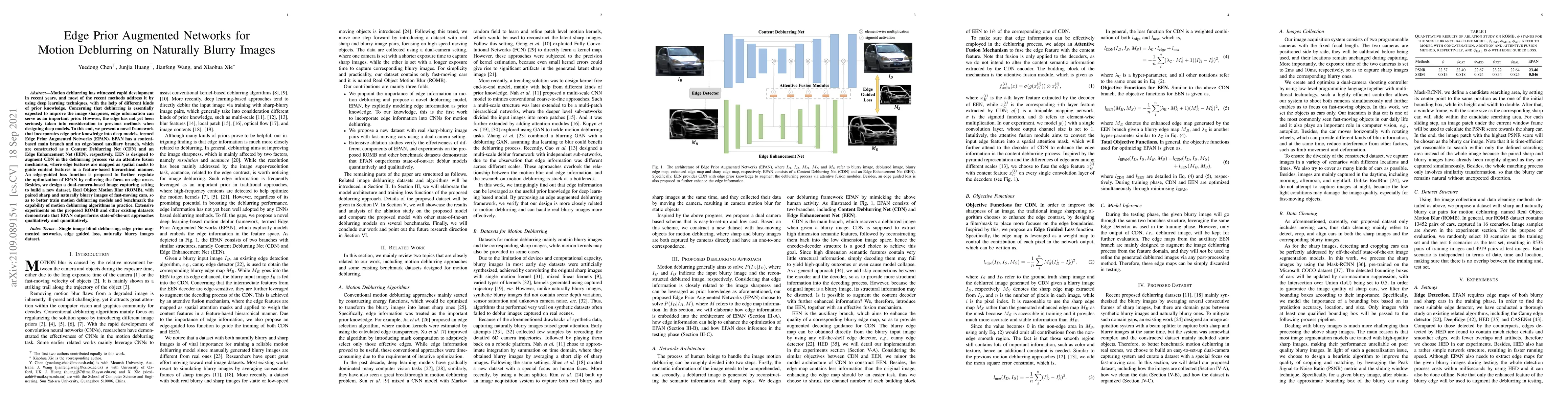 The paper introduces Edge Prior Augmented Networks (EPAN) to enhance motion deblurring by incorporating edge prior knowledge. EPAN combines a content-based main branch and an edge-based auxiliary branch to improve image sharpness, outperforming existing methods both qualitatively and quantitatively.