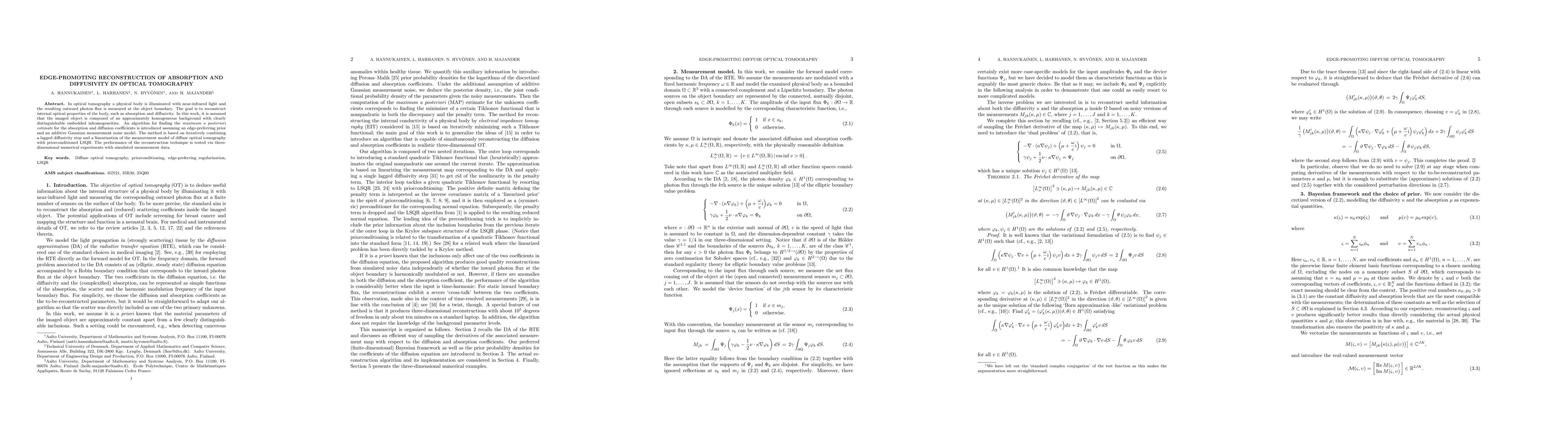 This paper introduces an algorithm for reconstructing absorption and diffusivity in optical tomography, assuming an edge-preferring prior and Gaussian noise. The method iteratively combines a lagged diffusivity step and linearization of the measurement model, and is validated through numerical experiments.