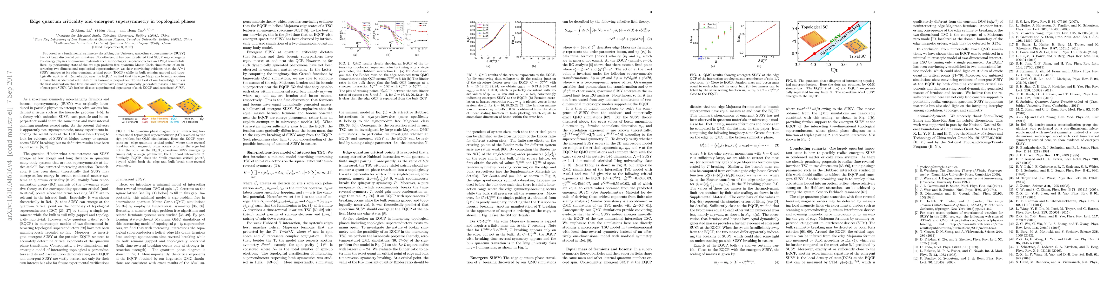 This paper demonstrates the emergence of N=1 spacetime supersymmetry (SUSY) at the edge quantum critical point of a 2D topological superconductor using advanced simulations. It reveals that edge Majorana fermions and their bosonic superpartners acquire equal dynamically-generated masses, a first observation of such emergent supersymmetry.
