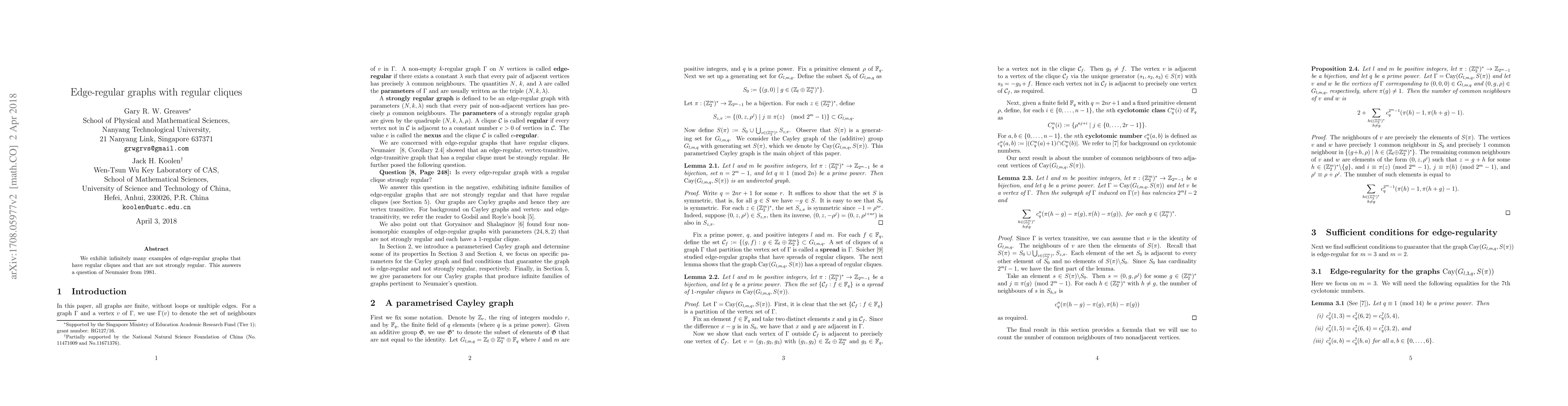 Summary: The paper presents infinitely many edge-regular graphs containing regular cliques but not strongly regular, resolving a question posed by Neumaier in 1981. This discovery highlights new structures in graph theory.
