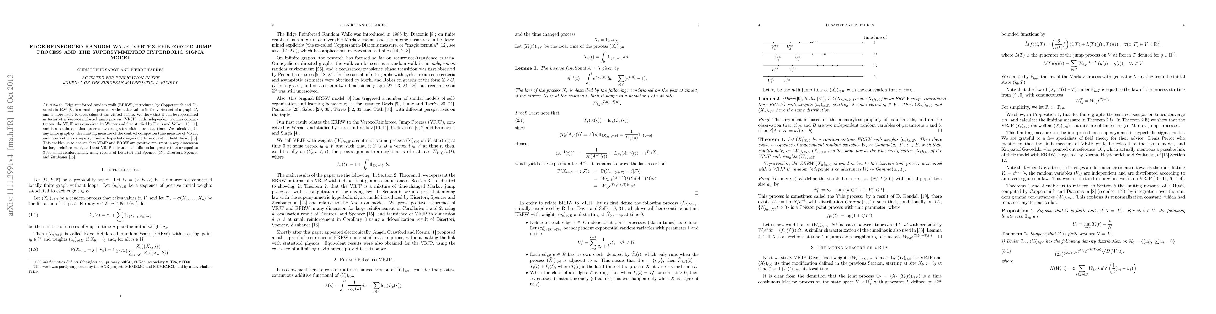 This paper connects the edge-reinforced random walk (ERRW) to the vertex-reinforced jump process (VRJP) with gamma conductances, and shows that the limiting measure of VRJP corresponds to a supersymmetric hyperbolic sigma model in quantum field theory. It concludes that both processes are positive recurrent for large reinforcement, while VRJP is transient in dimensions three or higher for small reinforcement.
