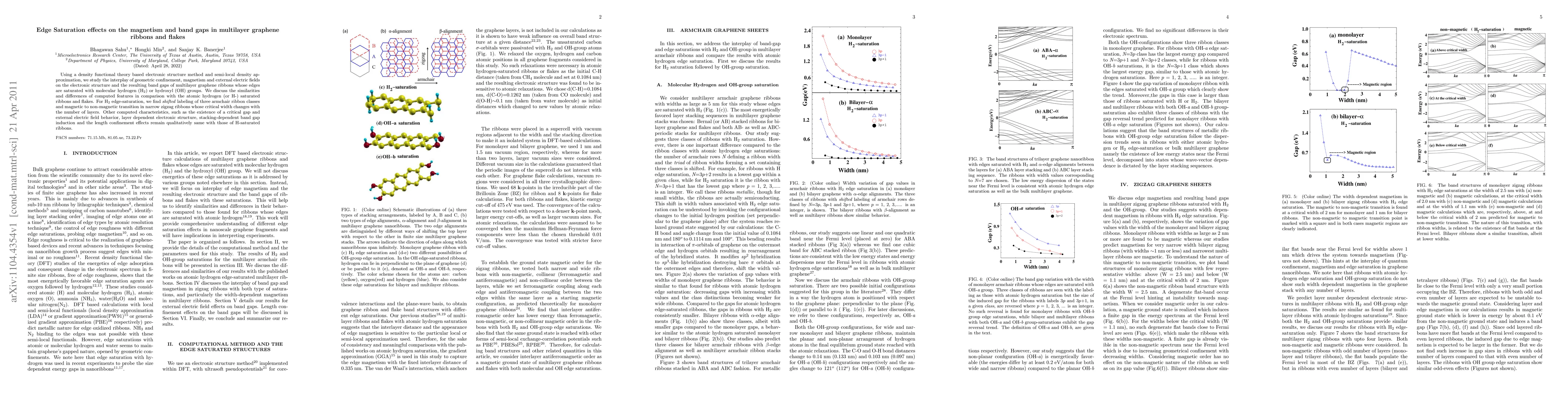 This research investigates how saturation of multilayer graphene ribbons with hydrogen molecules (H$_2$) or hydroxyl (OH) groups influences their magnetism and band gaps using density functional theory. The study finds shifts in labeling for armchair ribbons and magnetic-to-non-magnetic transitions in narrow zigzag ribbons, while maintaining similarities with atomic hydrogen (H)-saturated counterparts in other characteristics.