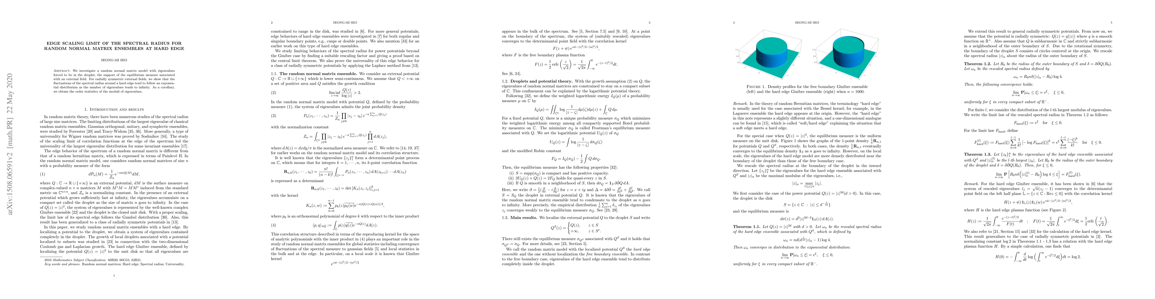 This paper studies fluctuations in the spectral radius of a random normal matrix model constrained within a droplet, revealing that these fluctuations follow an exponential distribution in the large matrix limit. It also derives the order statistics of the moduli of eigenvalues.