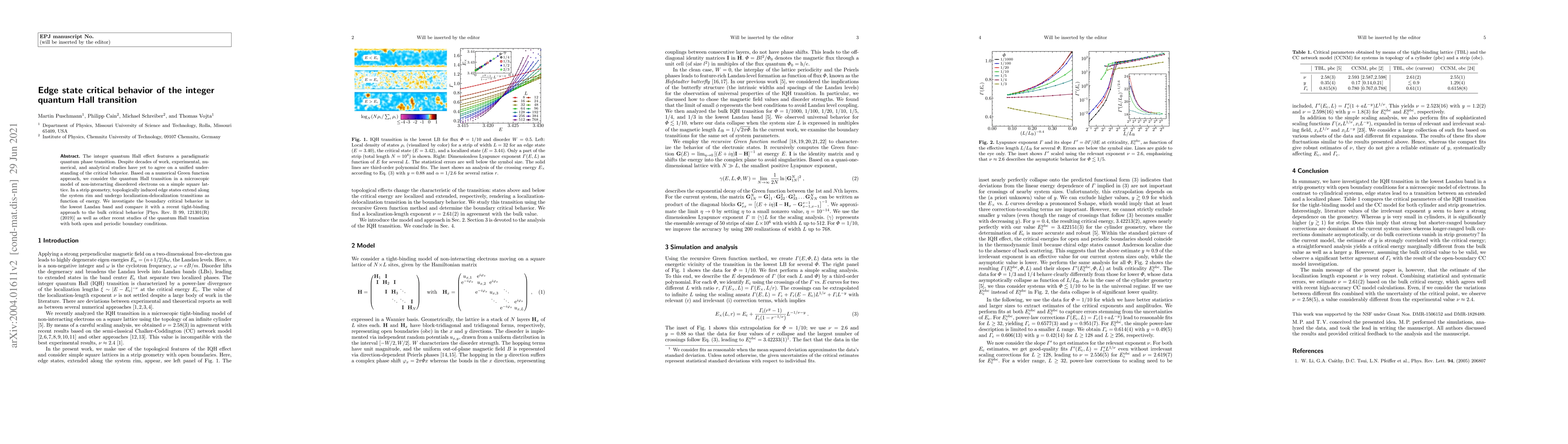 This paper uses a numerical Green function approach to study the quantum Hall transition in a disordered electron system on a square lattice, focusing on the edge state critical behavior in the lowest Landau band. It compares the edge state localization-delocalization transitions with recent bulk critical behavior studies and aims to unify understanding of the quantum Hall effect's critical phenomena.