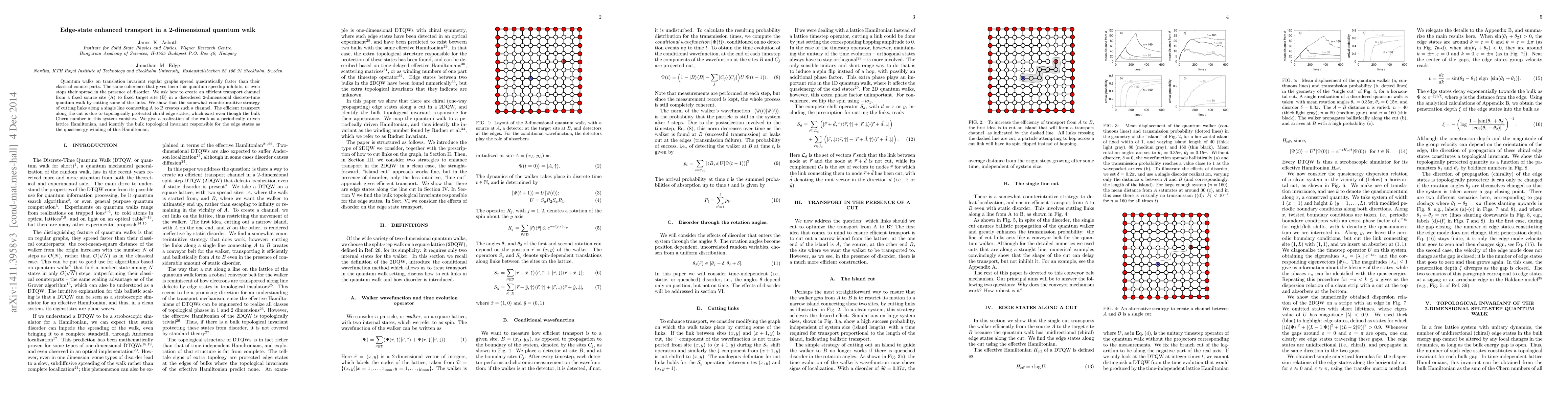 Quantum walks on translation invariant regular graphs spread quadratically faster than their classical counterparts. The same coherence that gives them this quantum speedup inhibits, or even stops their spread in the presence of disorder. We ask how to create an efficient transport channel from a fixed source site (A) to fixed target site (B) in a disordered 2-dimensional discrete-time quantum walk by cutting some of the links. We show that the somewhat counterintuitive strategy of cutting links along a single line connecting A to B creates such a channel. The efficient transport along the cut is due to topologically protected chiral edge states, which exist even though the bulk Chern number in this system vanishes. We give a realization of the walk as a periodically driven lattice Hamiltonian, and identify the bulk topological invariant responsible for the edge states as the quasienergy winding of this Hamiltonian.
