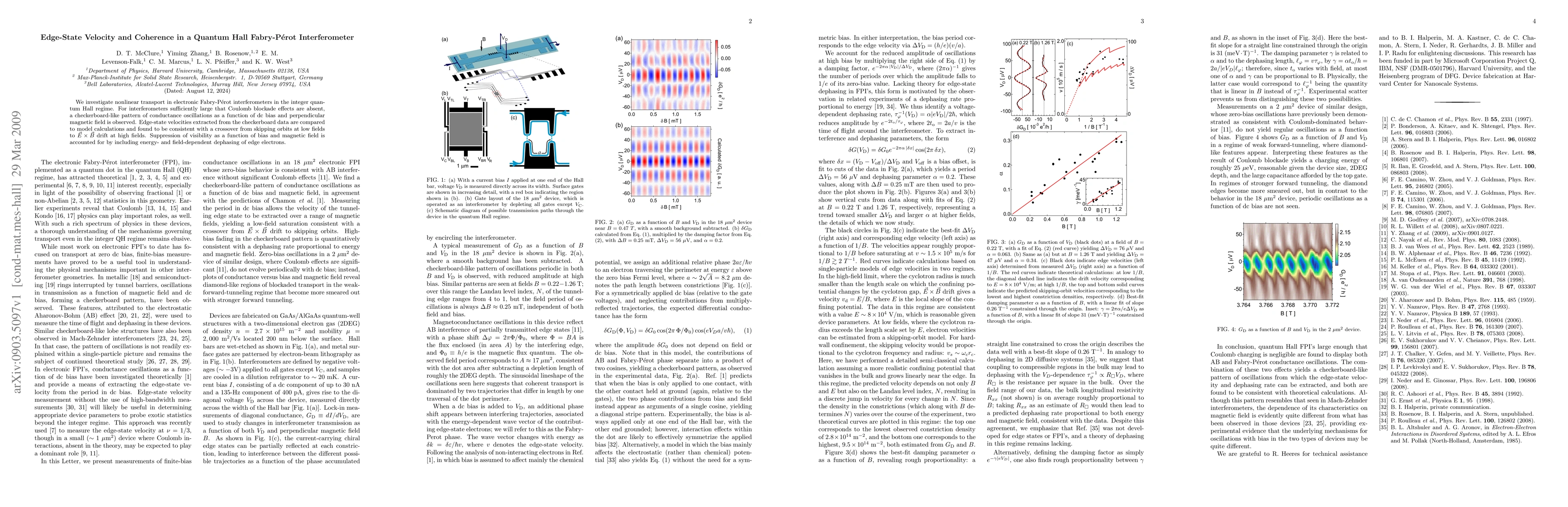 This paper examines nonlinear transport in quantum Hall interferometers, revealing conductance oscillations linked to edge-state velocities transitioning from skipping orbits to E x B drift. The coherence suppression is explained by energy- and field-dependent dephasing of edge electrons.