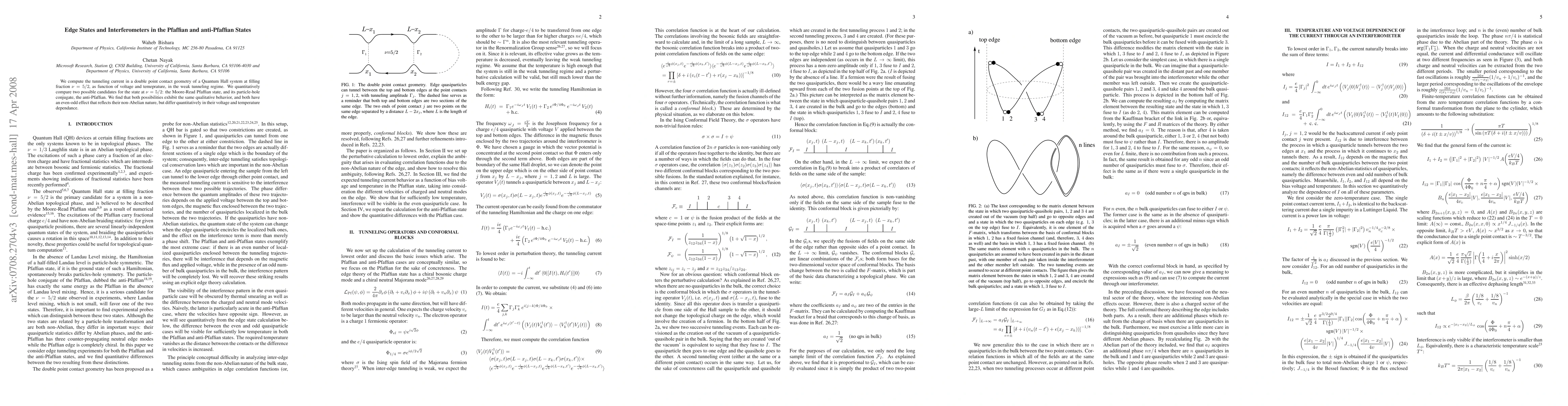 We compute the tunneling current in a double point contact geometry of a Quantum Hall system at filling fraction $\nu=5/2$, as function of voltage and temeprature, in the weak tunneling regime. We quantitatively compare two possible candidates for the state at $\nu=5/2$: the Moore-Read Pfaffian state, and its particle-hole conjugate, the anti-Pfaffian. We find that both possibilities exhibit the same qualitative behavior, and both have an even-odd effect that reflects their non-Abelian nature, but differ quantitatively in their voltage and temperature dependance.