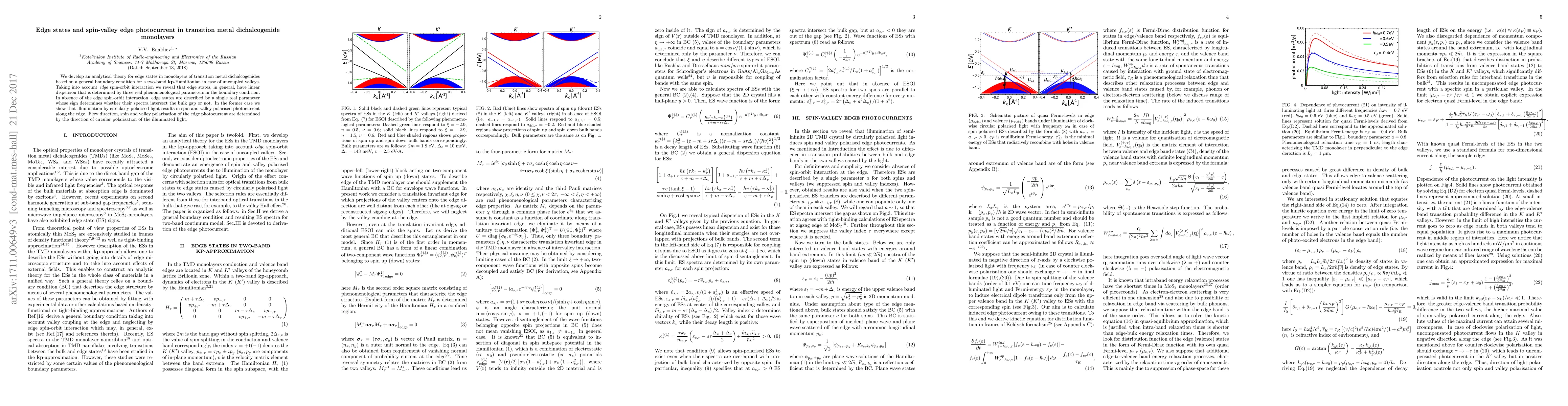 This paper develops an analytical theory for edge states in transition metal dichalcogenide monolayers, showing that these states exhibit linear dispersion influenced by edge spin-orbit interaction. It also demonstrates that circularly polarised light can induce spin and valley polarised photocurrent along the edge, with flow direction and polarisation dependent on light polarisation.