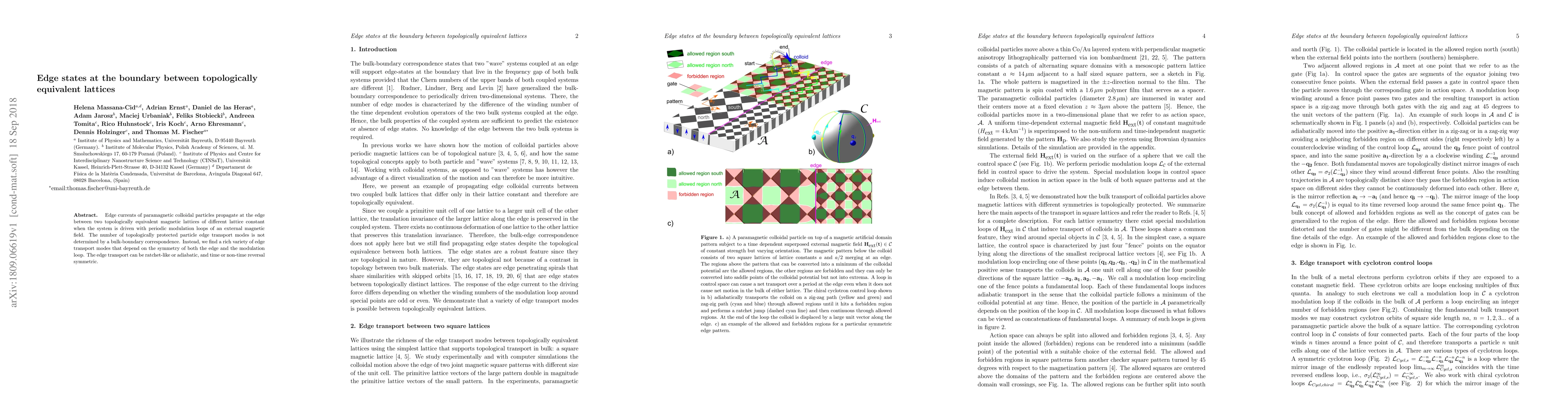Edge currents of paramagnetic colloidal particles propagate at the edge between two topologically equivalent magnetic lattices of different lattice constant when the system is driven with periodic modulation loops of an external magnetic field. The number of topologically protected particle edge transport modes is not determined by a bulk-boundary correspondence. Instead, we find a rich variety of edge transport modes that depend on the symmetry of both the edge and the modulation loop. The edge transport can be ratchet-like or adiabatic, and time or non-time reversal symmetric.