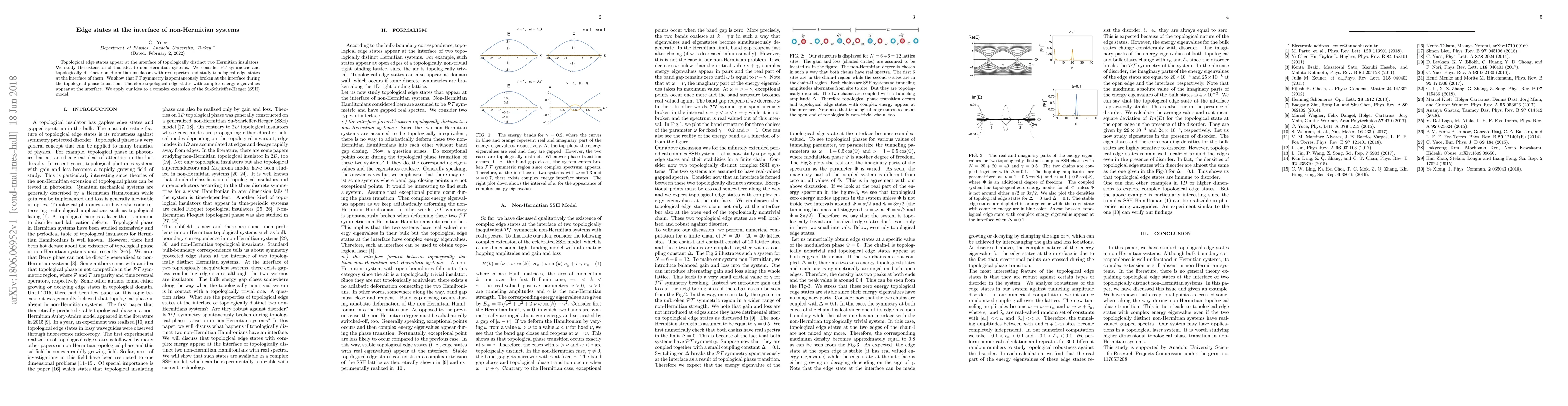 Topological edge states appear at the interface of topologically distinct two Hermitian insulators. We study the extension of this idea to non-Hermitian systems. We consider PT symmetric and topologically distinct non-Hermitian insulators with real spectra and study topological edge states at the interface of them. We show that PT symmetry is spontaneously broken at the interface during the topological phase transition. Therefore topological edge states with complex energy eigenvalues appear at the interface. We apply our idea to a complex extension of the Su-Schrieffer-Heeger (SSH) model.