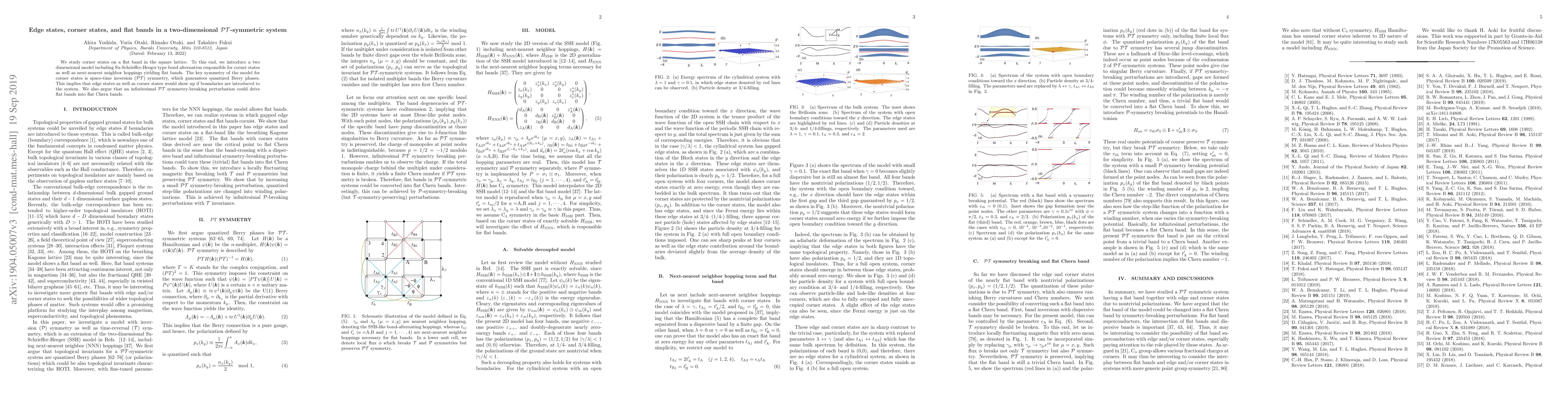 We study corner states on a flat band in the square lattice. To this end, we introduce a two dimensional model including Su-Schrieffer-Heeger type bond alternation responsible for corner states as well as next-nearest neighbor hoppings yielding flat bands. The key symmetry of the model for corner states is space-time inversion ($\cal PT$) symmetry, which guarantees quantized Berry phases. This implies that edge states as well as corner states would show up if boundaries are introduced to the system. We also argue that an infinitesimal $\cal PT$ symmetry-breaking perturbation could drive flat bands into flat Chern bands.