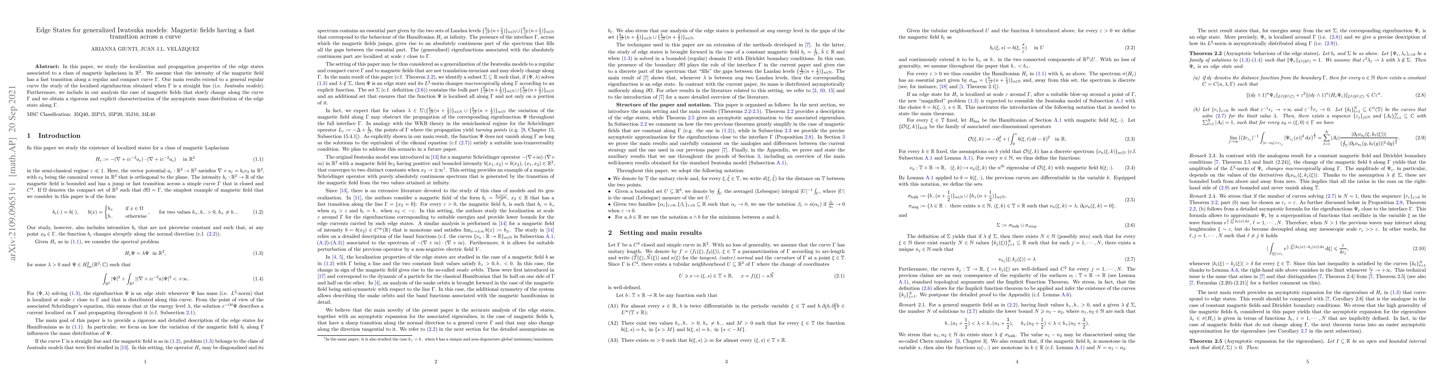 In this paper, we study the localization and propagation properties of the edge states associated to a class of magnetic laplacians in $\mathbb{R}^2$. We assume that the intensity of the magnetic field has a fast transition along a regular and compact curve $\Gamma$. Our main results extend to a general regular curve the study of the localised eigenfunction obtained when $\Gamma$ is a straight line (i.e. Iwatsuka models). Furthermore, we include in our analysis the case of magnetic fields that slowly change along the curve $\Gamma$ and we obtain a rigorous and explicit characterization of the asymptotic mass distribution of the edge state along $\Gamma$.