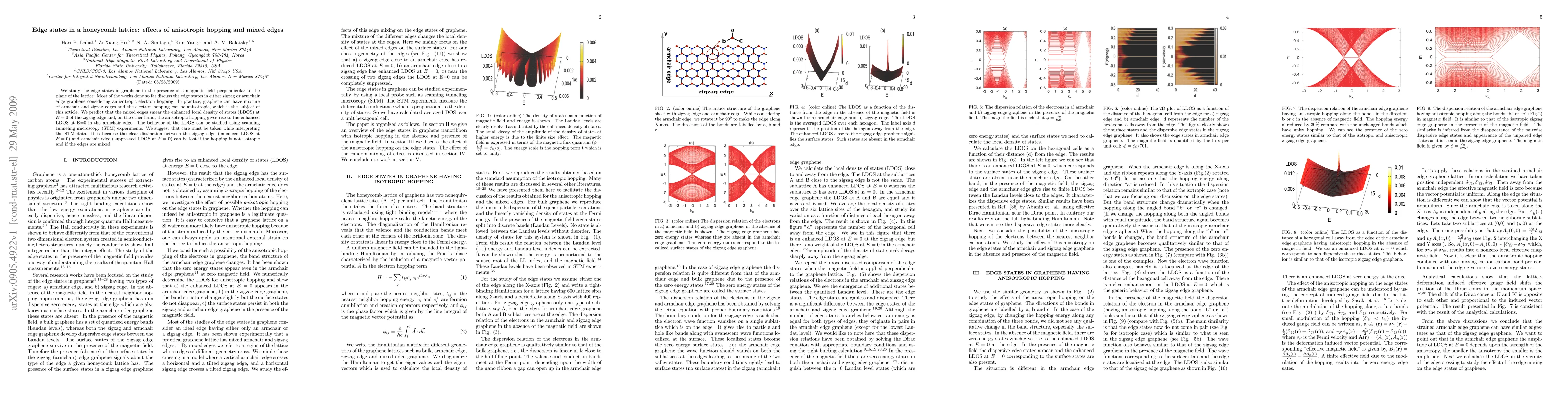 This paper explores the edge states in graphene with mixed armchair and zigzag edges under a perpendicular magnetic field, considering anisotropic electron hopping. It predicts that mixed edges reduce the enhanced local density of states at E=0 in zigzag edges while anisotropic hopping enhances it in armchair edges, complicating the interpretation of scanning tunneling microscopy data.