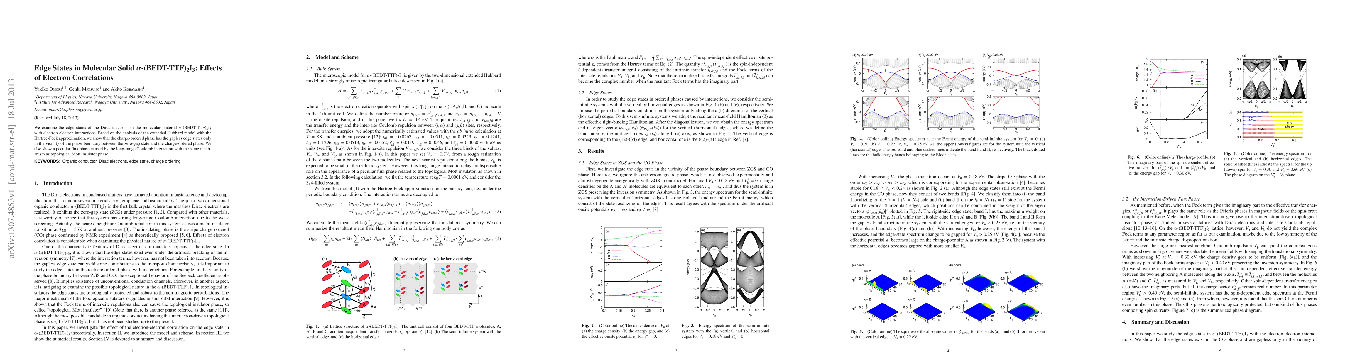 This paper investigates the edge states of Dirac electrons in \alpha-(BEDT-TTF)2I3 under electron correlations, revealing gapless edge states near the phase boundary between the zero-gap and charge-ordered phases. It also identifies a unique flux phase driven by long-range Coulomb interactions, akin to the topological Mott insulator phase.