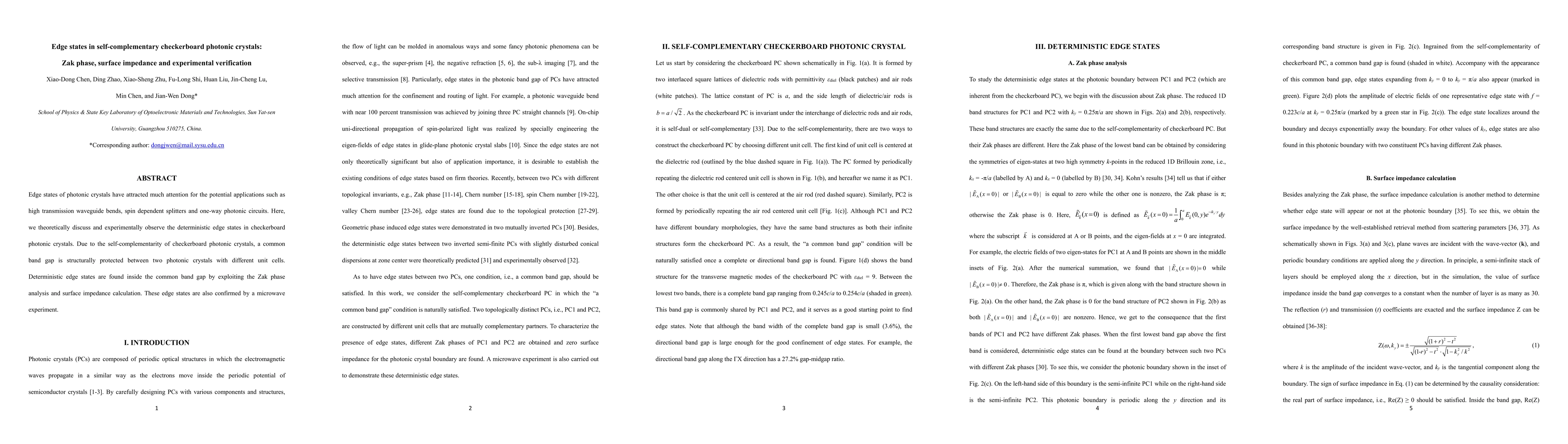 This paper theoretically and experimentally investigates edge states in self-complementary checkerboard photonic crystals, revealing deterministic edge states within a common band gap using Zak phase and surface impedance analysis, and verifying these findings with a microwave experiment.