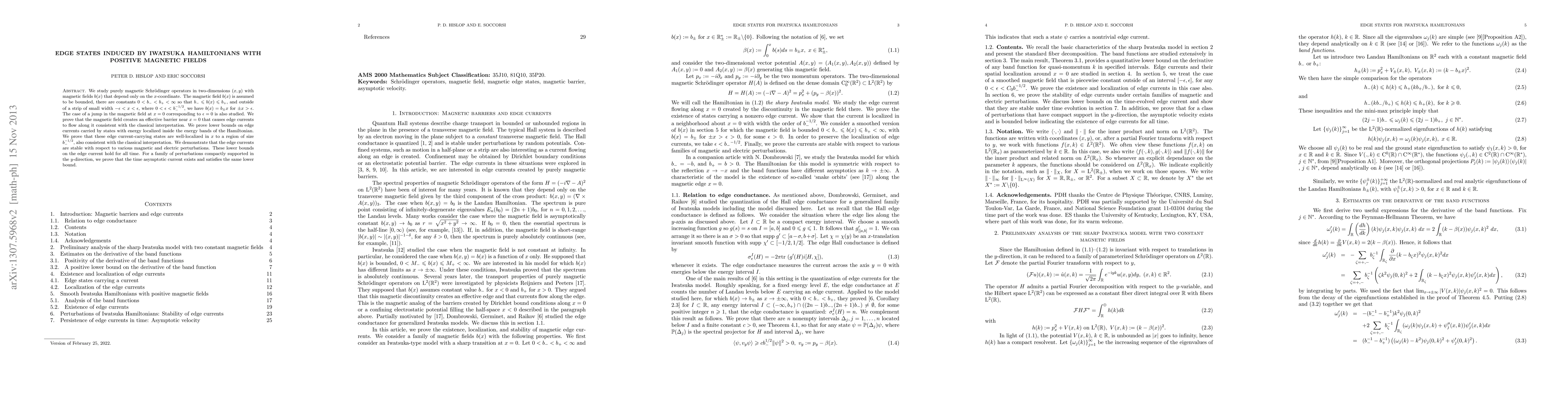 We study purely magnetic Schr\"odinger operators in two-dimensions $(x,y)$ with magnetic fields $b(x)$ that depend only on the $x$-coordinate. The magnetic field $b(x)$ is assumed to be bounded, there are constants $0 < b_- < b_+ < \infty$ so that $b_- \leq b(x) \leq b_+$, and outside of a strip of small width $-\epsilon < x < \epsilon$, where $0 < \epsilon < b_-^{-1/2}$, we have $b(x) = b_\pm x$ for $\pm x > \epsilon$. The case of a jump in the magnetic field at $x=0$ corresponding to $\epsilon=0$ is also studied. We prove that the magnetic field creates an effective barrier near $x=0$ that causes edge currents to flow along it consistent with the classical interpretation. We prove lower bounds on edge currents carried by states with energy localized inside the energy bands of the Hamiltonian. We prove that these edge current-carrying states are well-localized in $x$ to a region of size $b_-^{-1/2}$, also consistent with the classical interpretation. We demonstrate that the edge currents are stable with respect to various magnetic and electric perturbations. For a family of perturbations compactly supported in the $y$-direction, we prove that the time asymptotic current exists and satisfies the same lower bound.