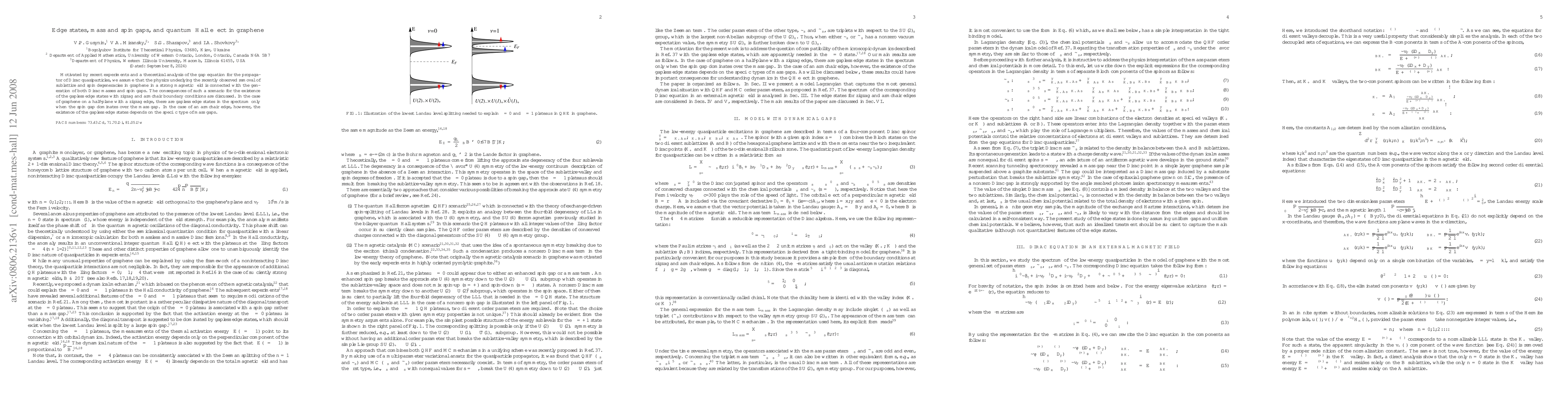 This research explores the relationship between Dirac mass and spin gaps in graphene under strong magnetic fields, revealing that edge states' existence depends on the dominance of spin or mass gap, particularly for zigzag and armchair edges.