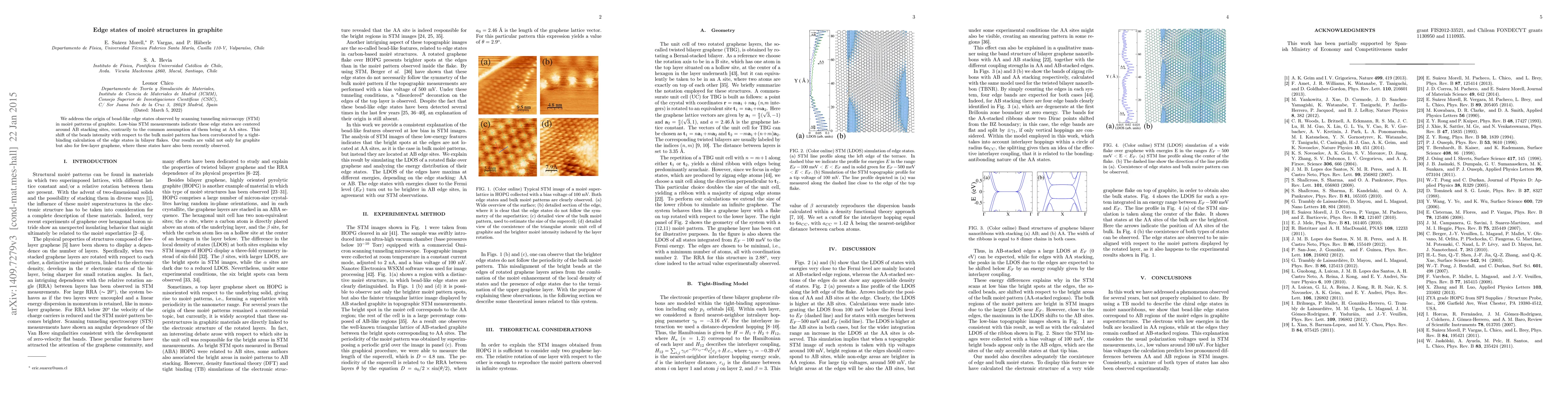 The study identifies that bead-like edge states in moiré patterns of graphite, observed via scanning tunneling microscopy, are centered around AB stacking sites instead of AA sites. Tight-binding calculations support this finding and suggest these edge states are also applicable to few-layer graphene.