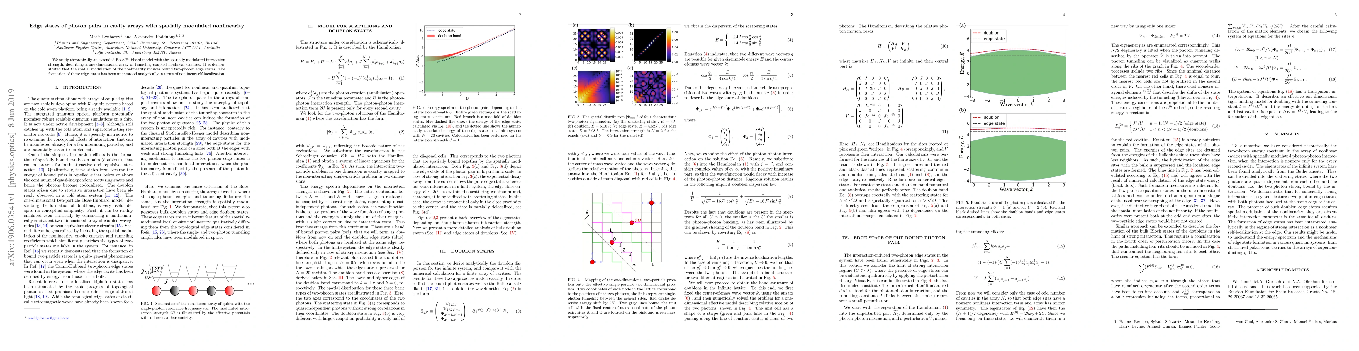 Summary: This paper theoretically investigates a one-dimensional array of nonlinear cavities with spatially modulated interaction strength, revealing that the modulation induces bound two-photon edge states due to nonlinear self-localization. The analytical understanding of these edge states is provided.
