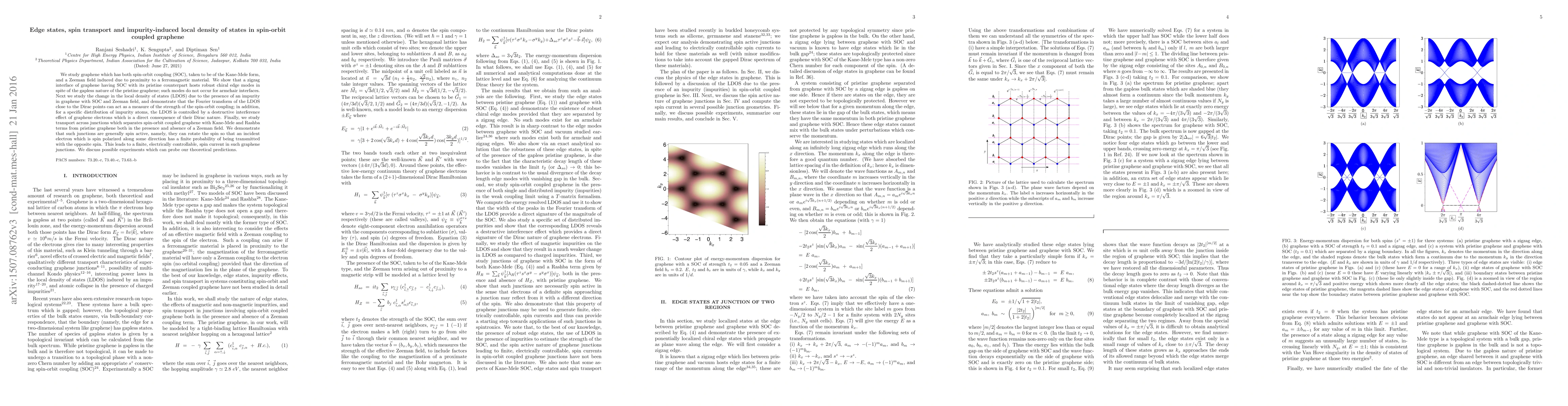 This paper explores spin-orbit coupled graphene with Kane-Mele and Zeeman fields, revealing robust chiral edge modes at zigzag interfaces and spin-dependent transport across graphene junctions, demonstrating electrically controllable spin currents. It also investigates impurity-induced local density of states, showing interference effects and a measure of spin-orbit coupling.
