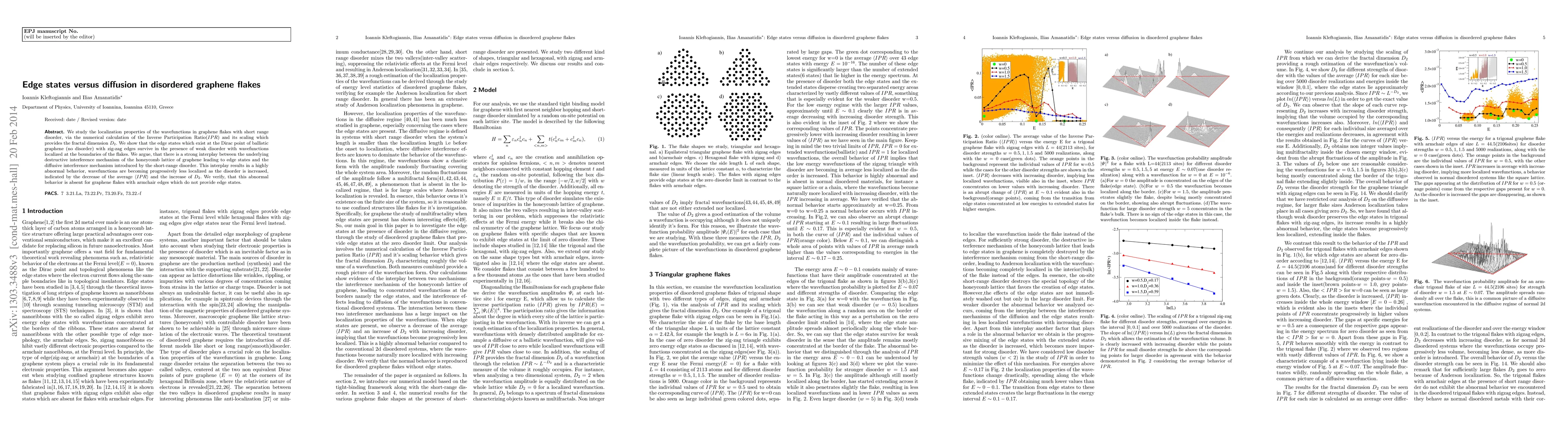 This research investigates how edge states in graphene flakes with short-range disorder affect wavefunction localization. It finds that edge states persist with weak disorder, while increased disorder paradoxically reduces wavefunction localization due to a complex interplay between graphene's lattice interference and disorder-induced interference.