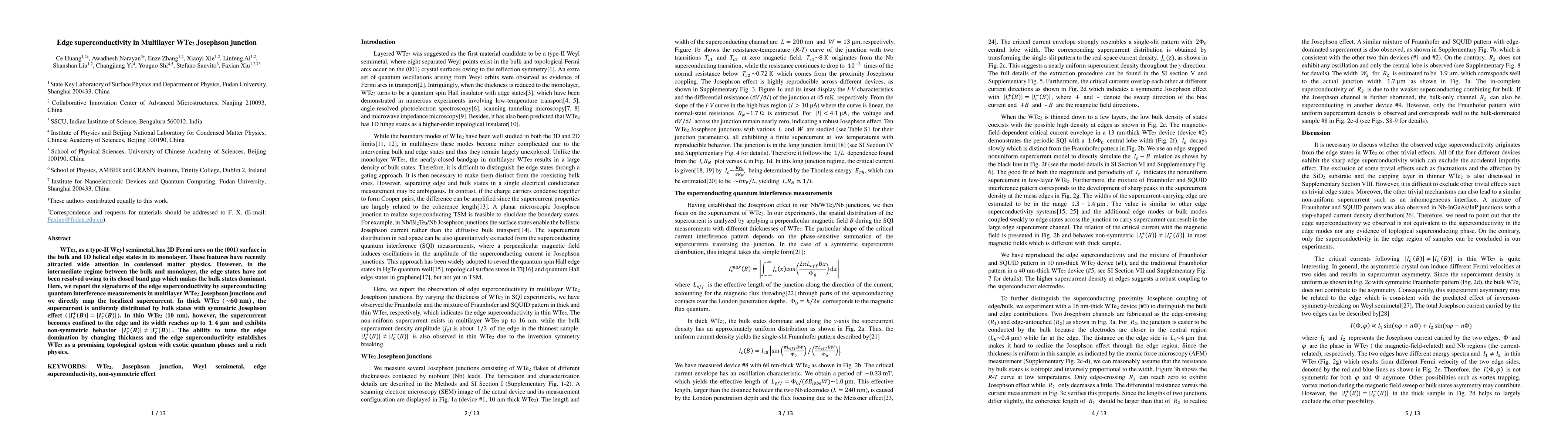 This study investigates the edge superconductivity in multilayer WTe2 Josephson junctions, revealing that thick WTe2 exhibits uniform supercurrent through bulk states, while thin WTe2 confines supercurrent to the edge, indicating a tunable topological quantum phase.
