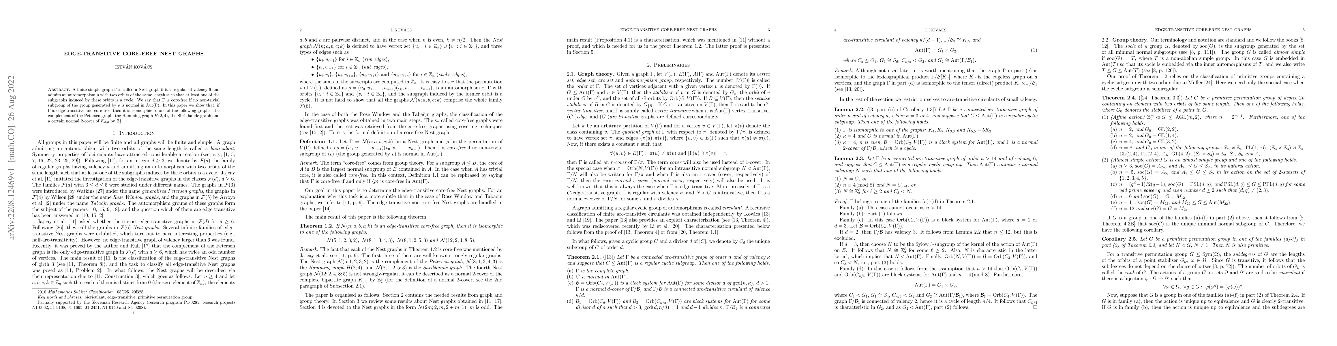 The paper presents a thorough classification of edge-transitive core-free nest graphs, extending previous results and providing new insights into their automorphism groups and structural properties.