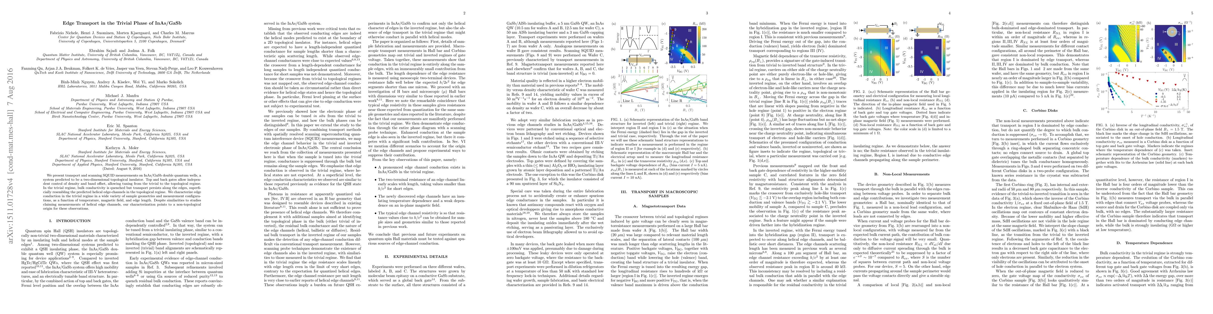 We present transport and scanning SQUID measurements on InAs/GaSb double quantum wells, a system predicted to be a two-dimensional topological insulator. Top and back gates allow independent control of density and band offset, allowing tuning from the trivial to the topological regime. In the trivial regime, bulk conductivity is quenched but transport persists along the edges, superficially resembling the predicted helical edge-channels in the topological regime. We characterize edge conduction in the trivial regime in a wide variety of sample geometries and measurement configurations, as a function of temperature, magnetic field, and edge length. Despite similarities to studies claiming measurements of helical edge channels, our characterization points to a non-topological origin for these observations.