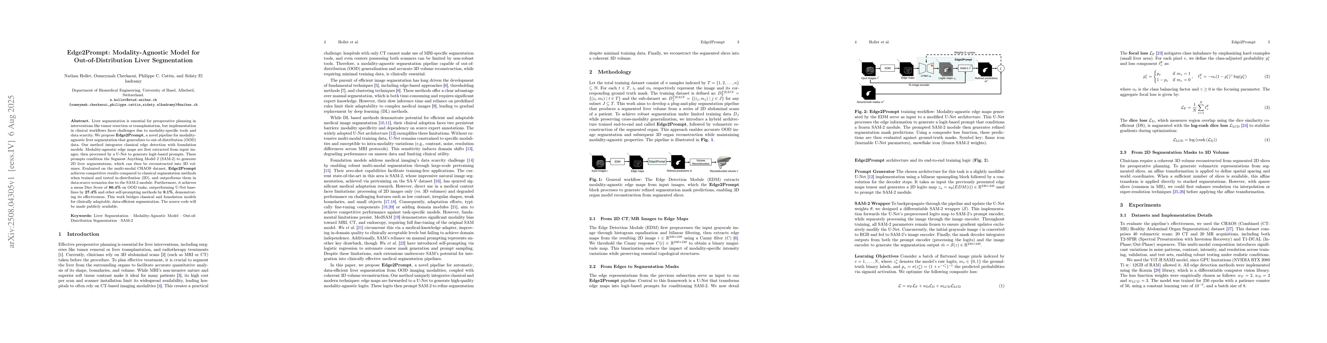 Liver segmentation is essential for preoperative planning in interventions like tumor resection or transplantation, but implementation in clinical workflows faces challenges due to modality-specific tools and data scarcity. We propose Edge2Prompt, a novel pipeline for modality-agnostic liver segmentation that generalizes to out-of-distribution (OOD) data. Our method integrates classical edge detection with foundation models. Modality-agnostic edge maps are first extracted from input images, then processed by a U-Net to generate logit-based prompts. These prompts condition the Segment Anything Model 2 (SAM-2) to generate 2D liver segmentations, which can then be reconstructed into 3D volumes. Evaluated on the multi-modal CHAOS dataset, Edge2Prompt achieves competitive results compared to classical segmentation methods when trained and tested in-distribution (ID), and outperforms them in data-scarce scenarios due to the SAM-2 module. Furthermore, it achieves a mean Dice Score of 86.4% on OOD tasks, outperforming U-Net baselines by 27.4% and other self-prompting methods by 9.1%, demonstrating its effectiveness. This work bridges classical and foundation models for clinically adaptable, data-efficient segmentation.