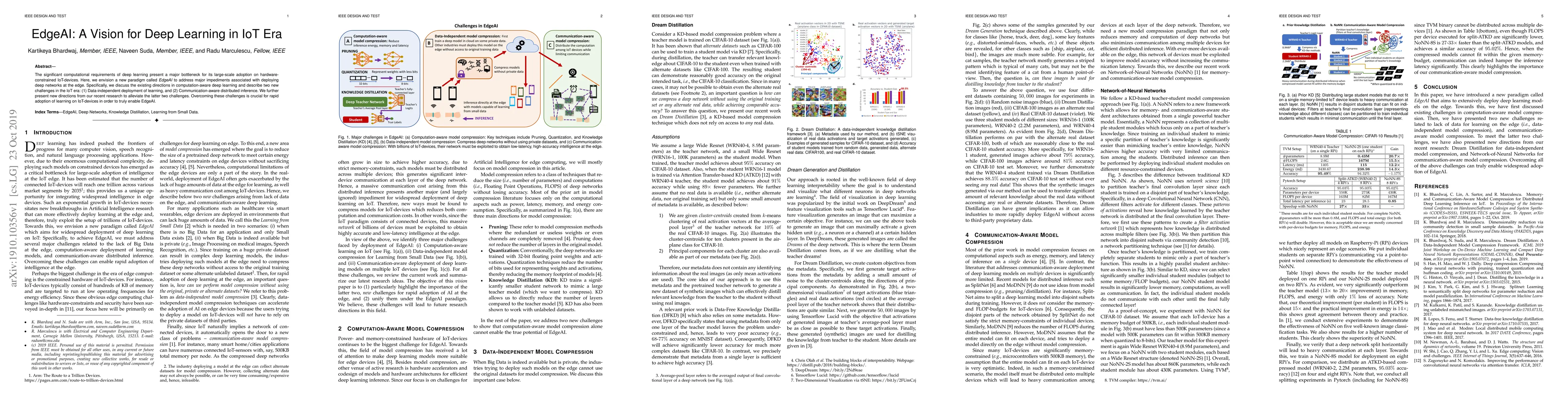 EdgeAI proposes a new paradigm to tackle the computational challenges of deep learning on IoT devices. It addresses two key challenges: data-independent deployment of learning and communication-aware distributed inference, presenting new research directions to facilitate the rapid adoption of learning on IoT devices.