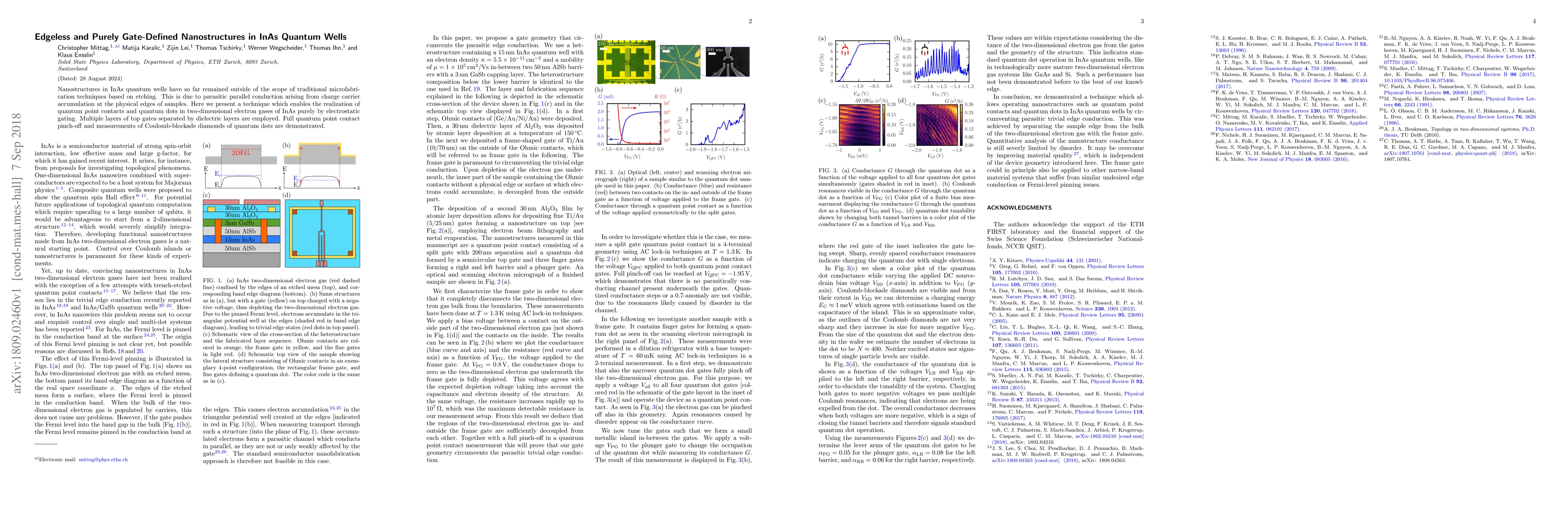 Researchers created nanostructures in InAs quantum wells using electrostatic gating, overcoming a long-standing challenge that limited their fabrication. This breakthrough enables the realization of quantum point contacts and quantum dots in two-dimensional electron gases.