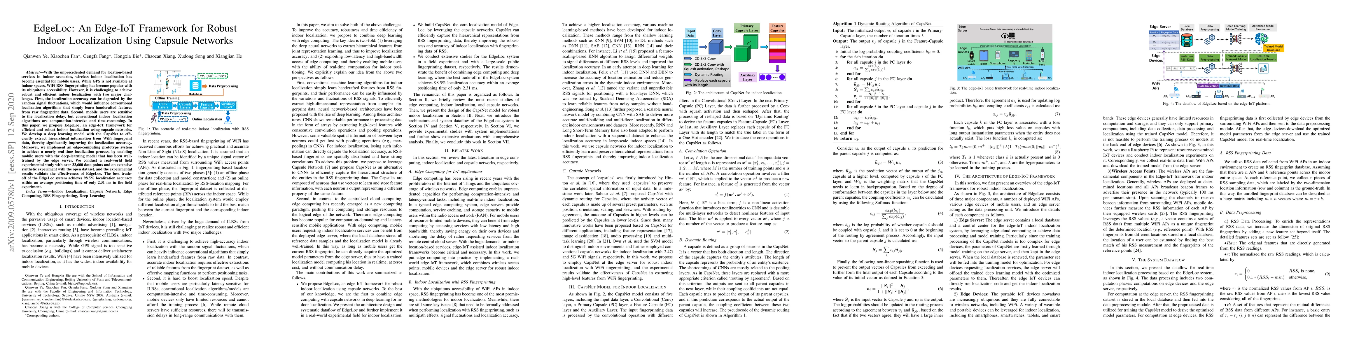 EdgeLoc presents an edge-IoT framework for robust indoor localization using capsule networks to tackle the challenges of signal fluctuation and localization delay. The proposed CapsNet model significantly enhances accuracy and achieves nearly real-time localization with 98.5% accuracy in field experiments.